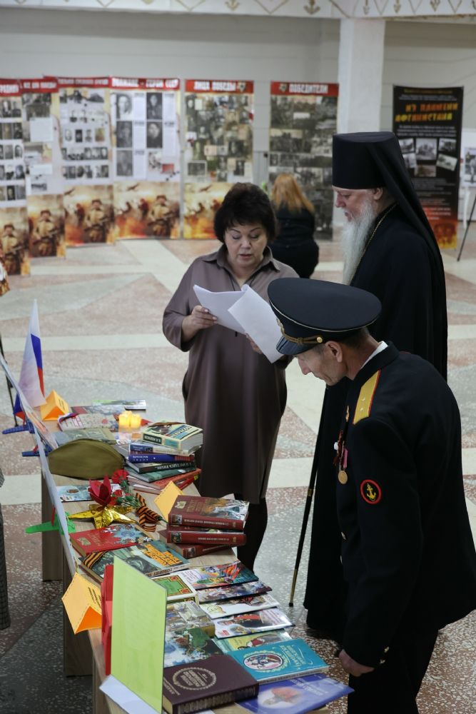 В фойе Центра культуры была развернута выставка «Война. Победа. Память», подготовленная Волжским краеведческим музеем, а также представлена литературная композиция на военную тематику.