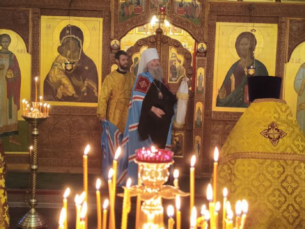 Его Высокопреосвященству сослужили благочинный Лугово-Марийского церковного округа протоиерей Алексий Никитин, настоятель храма иерей Антоний Блинов, клирик храма иерей Александр Сергунин и протодиакон Михаил Козловский. Песнопения исполнял хор храма.