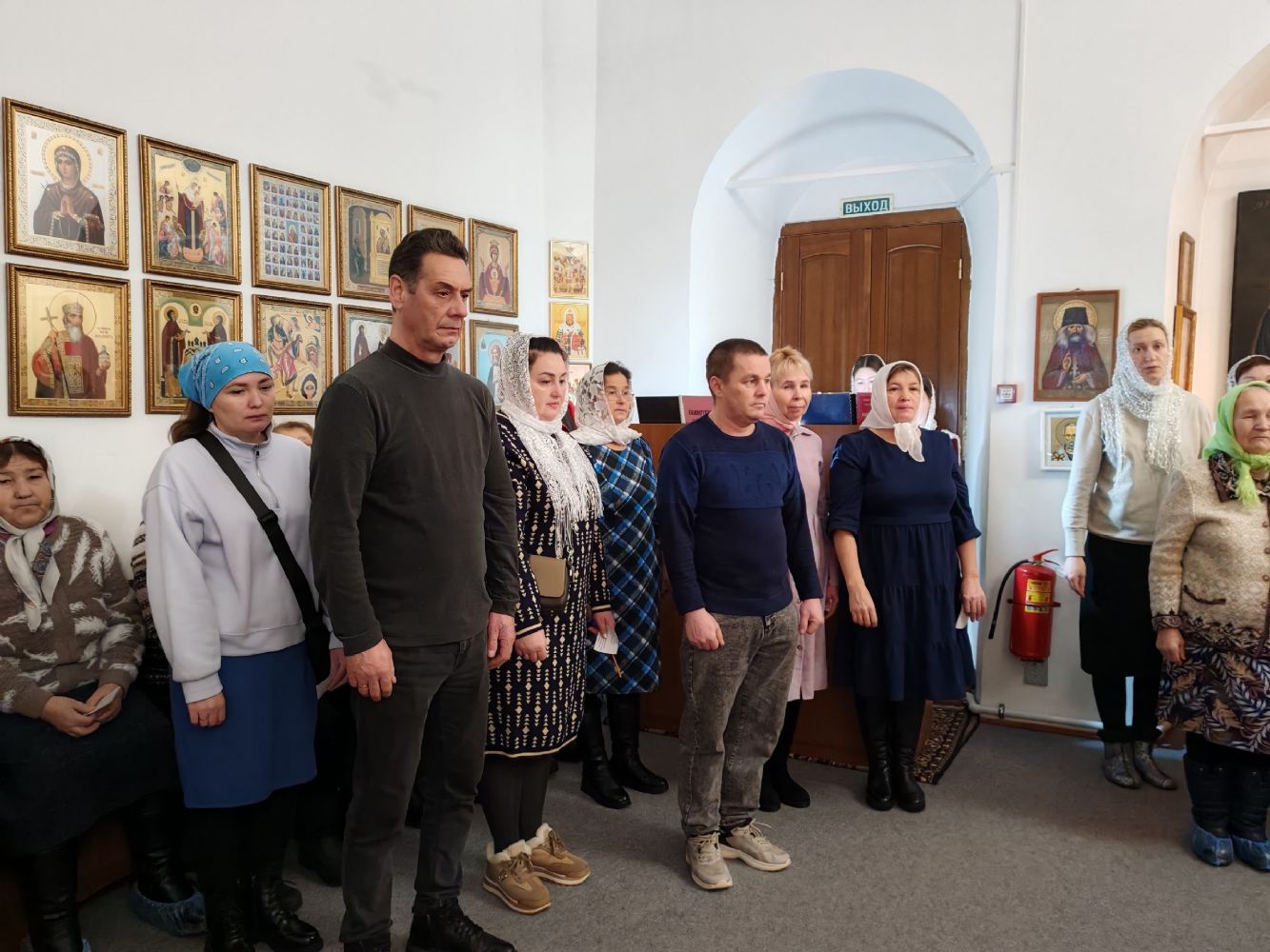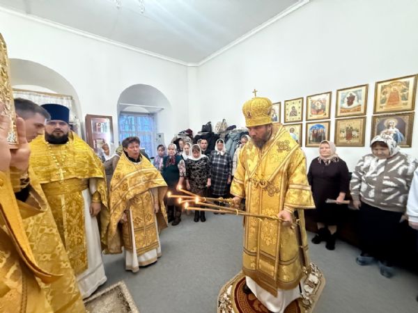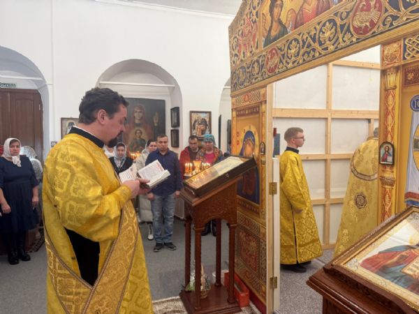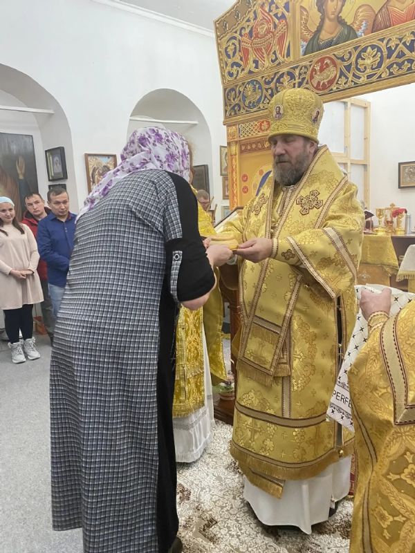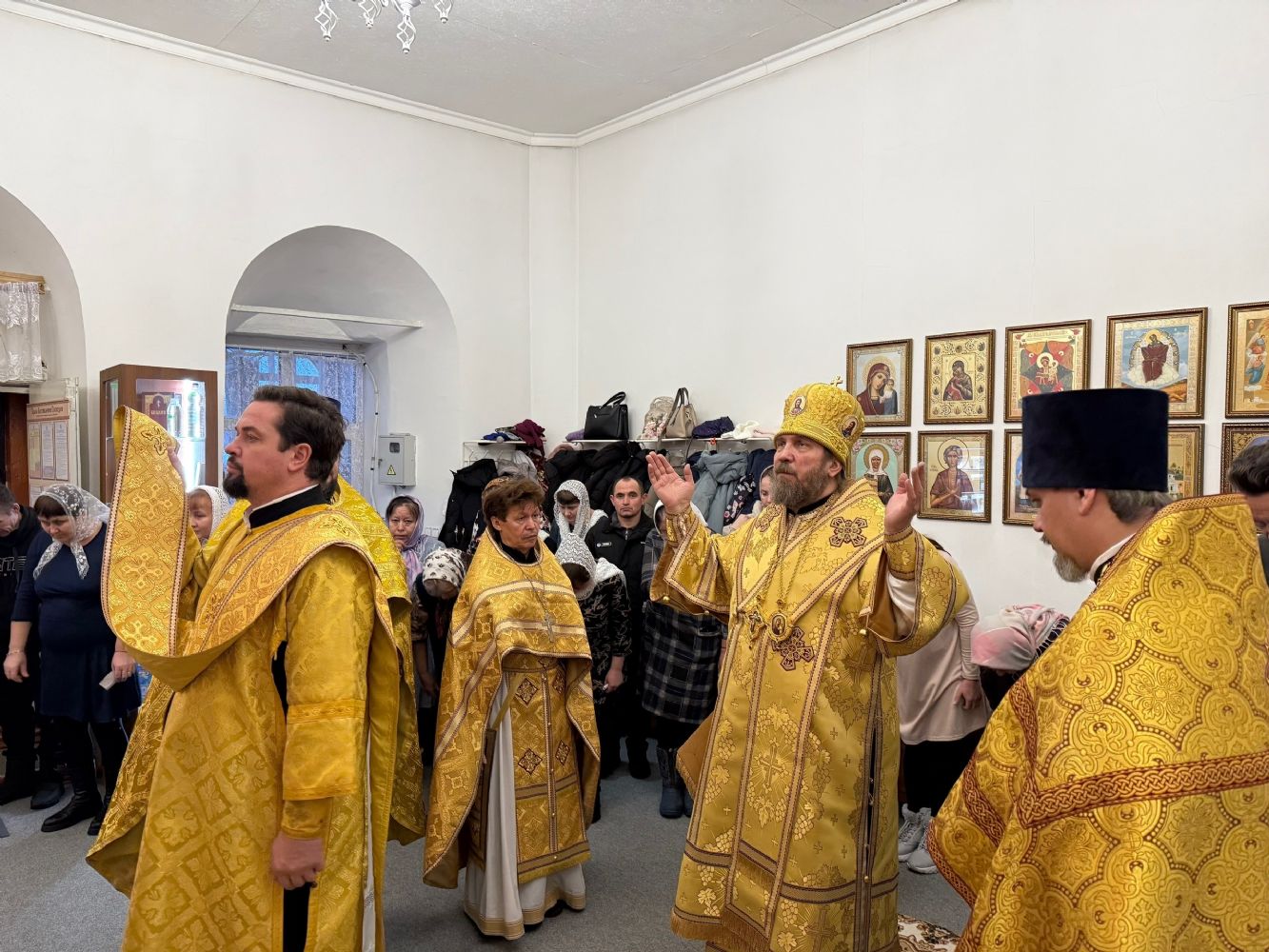 Его Преосвященству сослужили настоятель храма иерей Олег Михайлов, настоятель храма Рождества Христова г. Йошкар-Олы иерей Александр Лоскутов, клирик Успенского храма г. Йошкар-Олы иерей Никита Иванов и клирик Воскресенского собора г. Йошкар-Олы диакон Алексий Кузнецов.