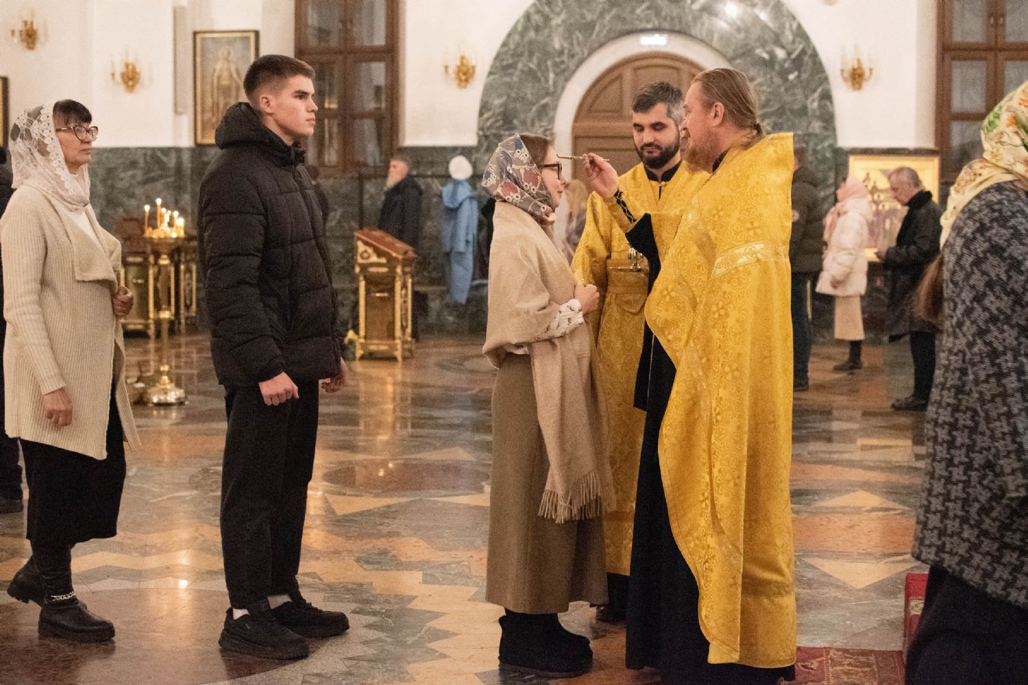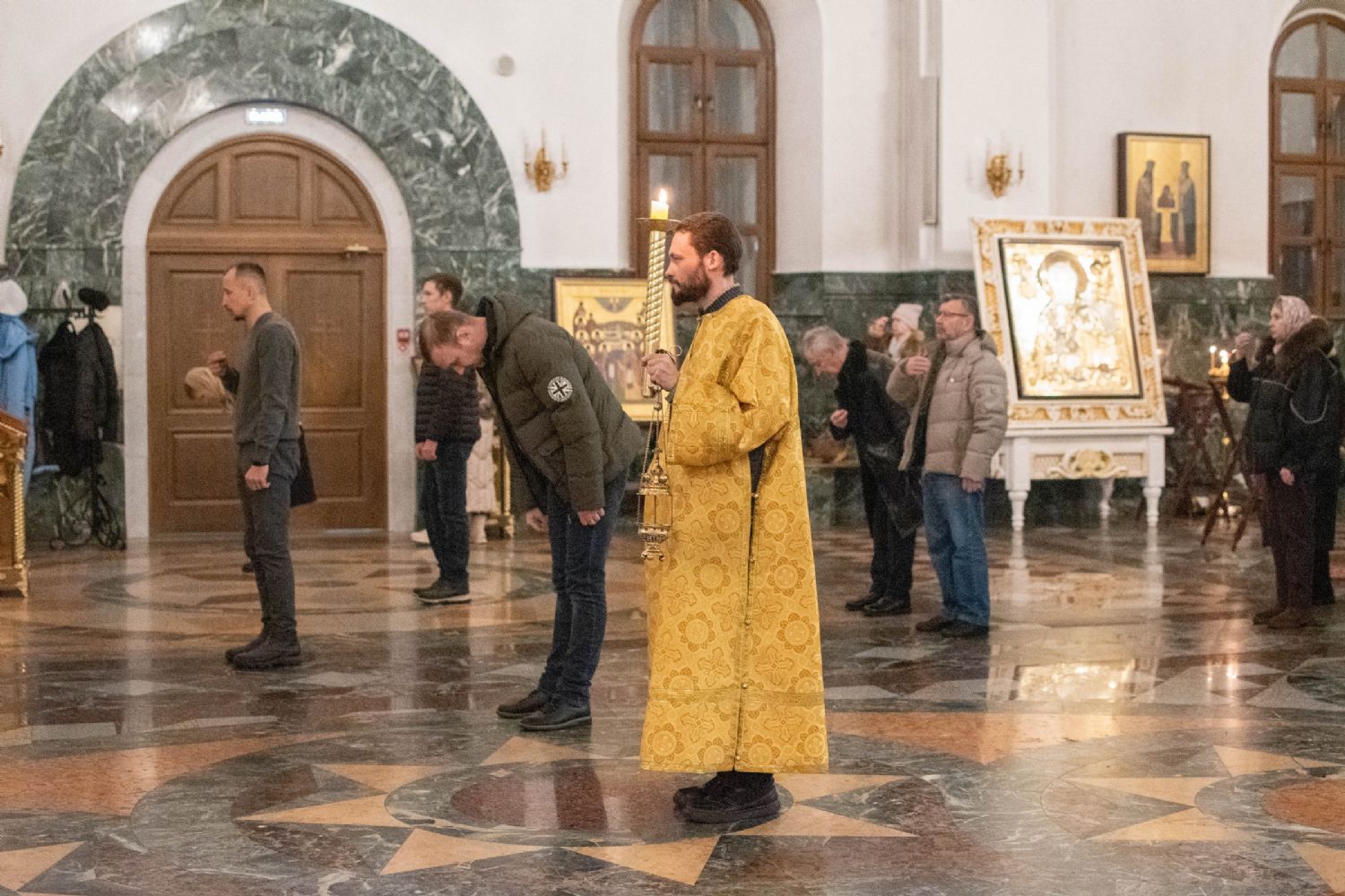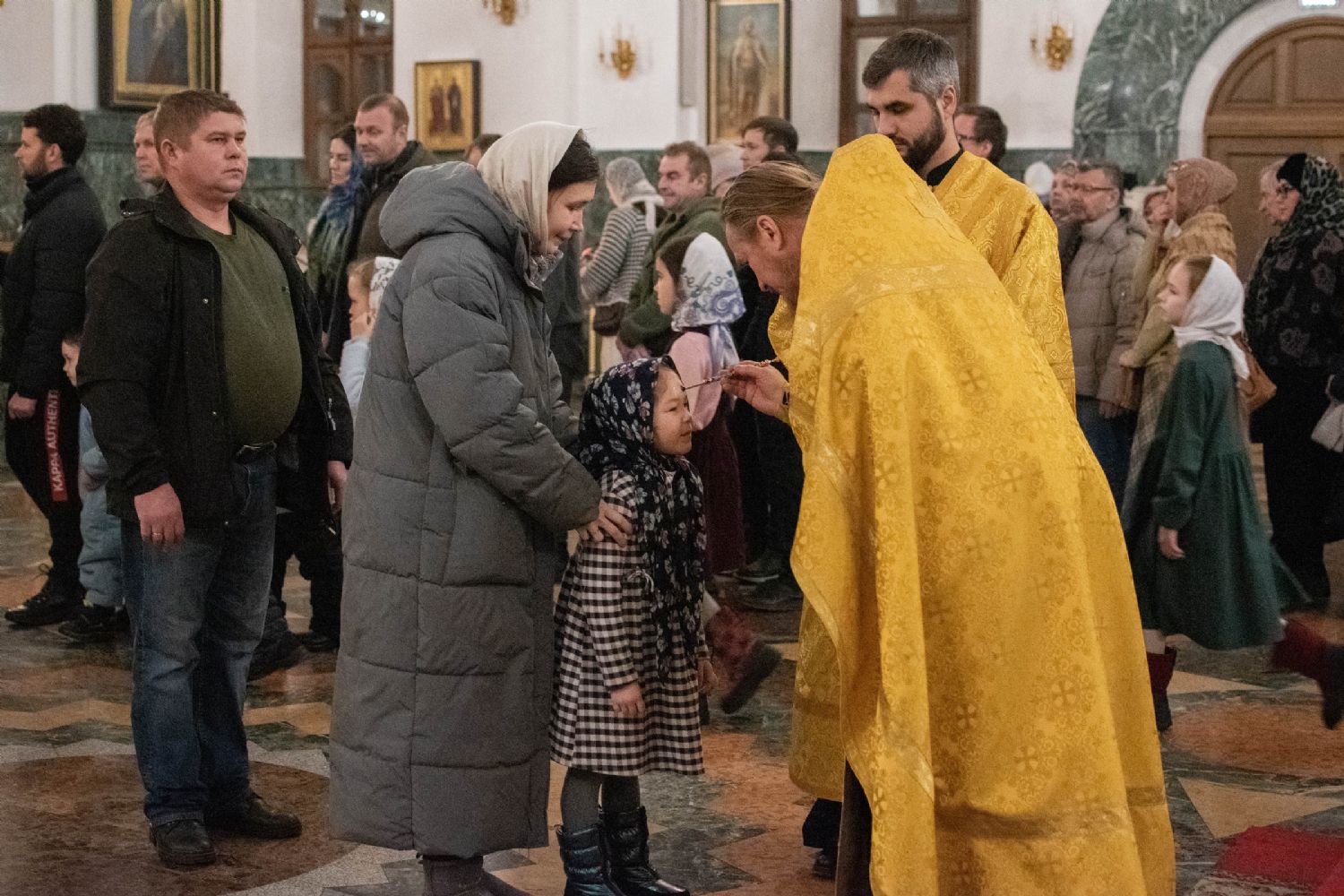 Владыке сослужили ключарь кафедрального собора протоиерей Сергий Поглазов, клирики собора иереи Никифор Захаров, Евгений Самойлов, Александр Староверов, Иоанн Милютин, диакон Артемий Бобоч, а также протодиакон Михаил Козловский. Песнопения исполняли старший и младший составы архиерейского детско-юношеского хора «Благовест» под управлением регентов Татьяны Черновой и Надежды Поздеевой.