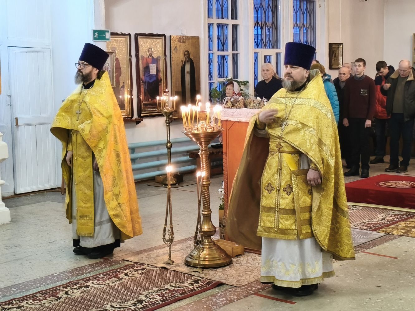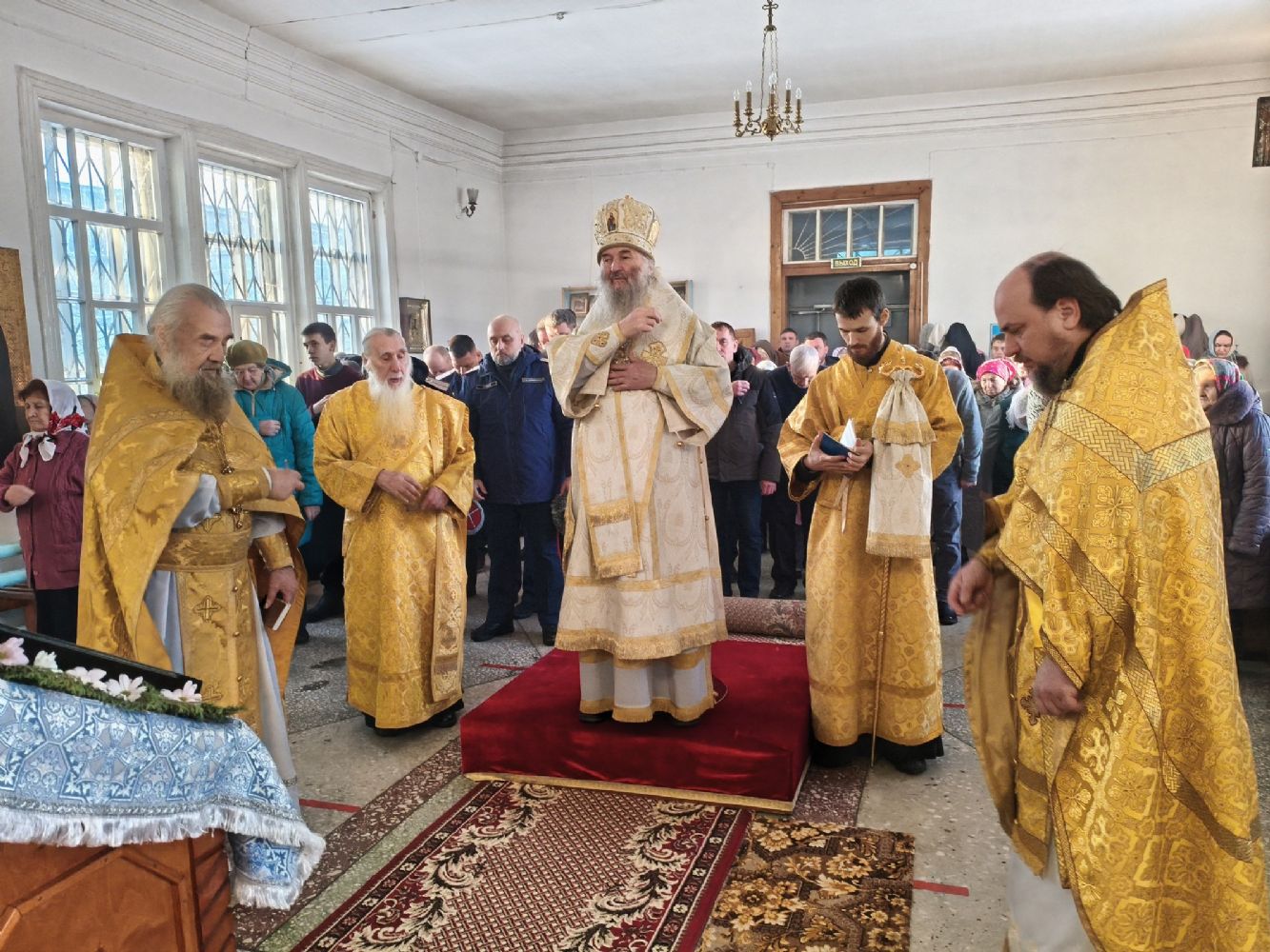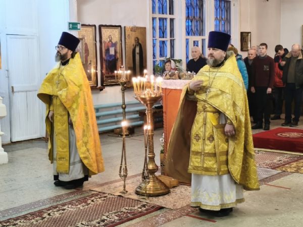 Архипастырю сослужили секретарь Йошкар-Олинского епархиального управления иерей Димитрий Дьяков, благочинный Пригородного церковного округа протоиерей Николай Ярошевич, настоятель храма протоиерей Валентин Пылаев и протодиакон Михаил Козловский. Песнопения исполнял хор храма Рождества Христова г. Йошкар-Олы.
