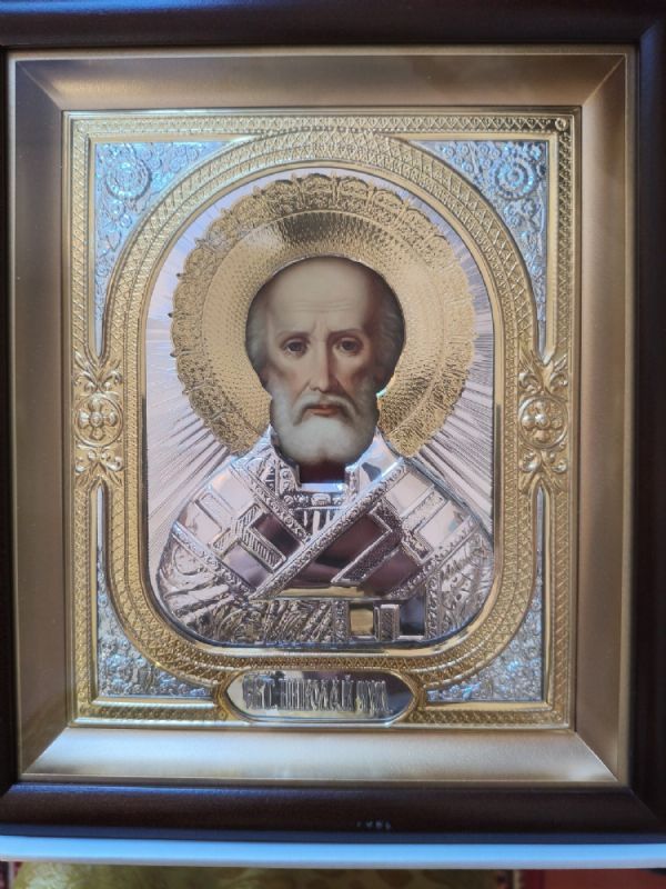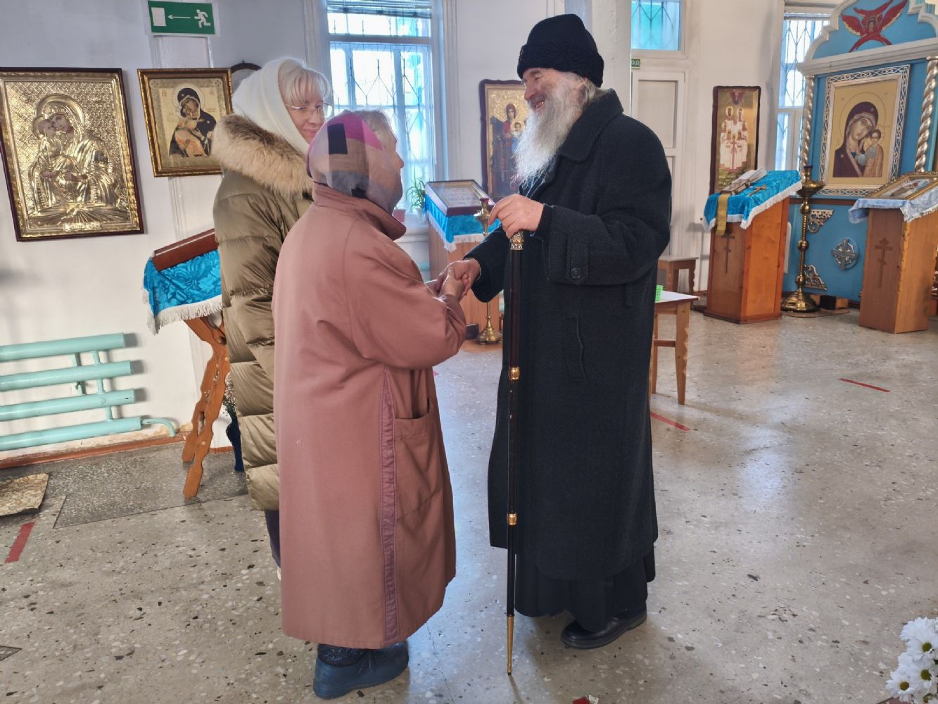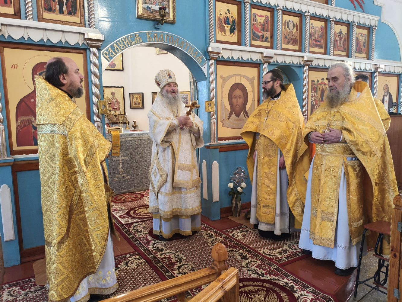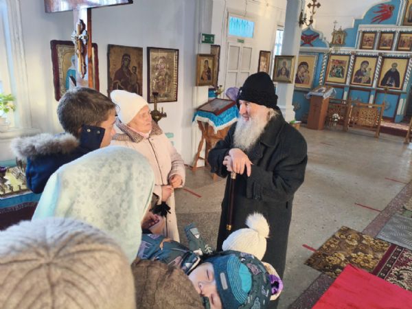По окончании Литургии владыка тепло поздравил настоятеля храма отца Валентина с грядущим юбилеем и вручил ему на молитвенную память икону святителя Николая Чудотворца.
