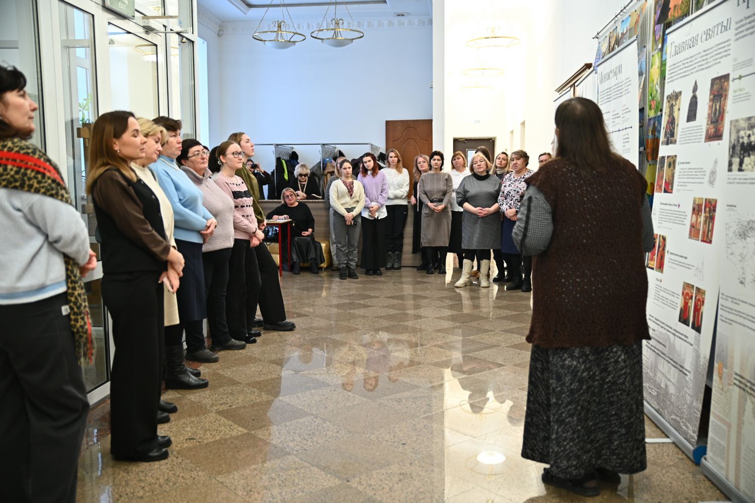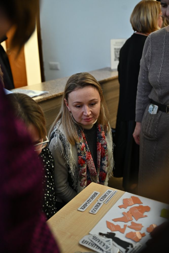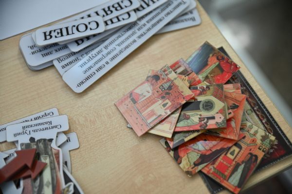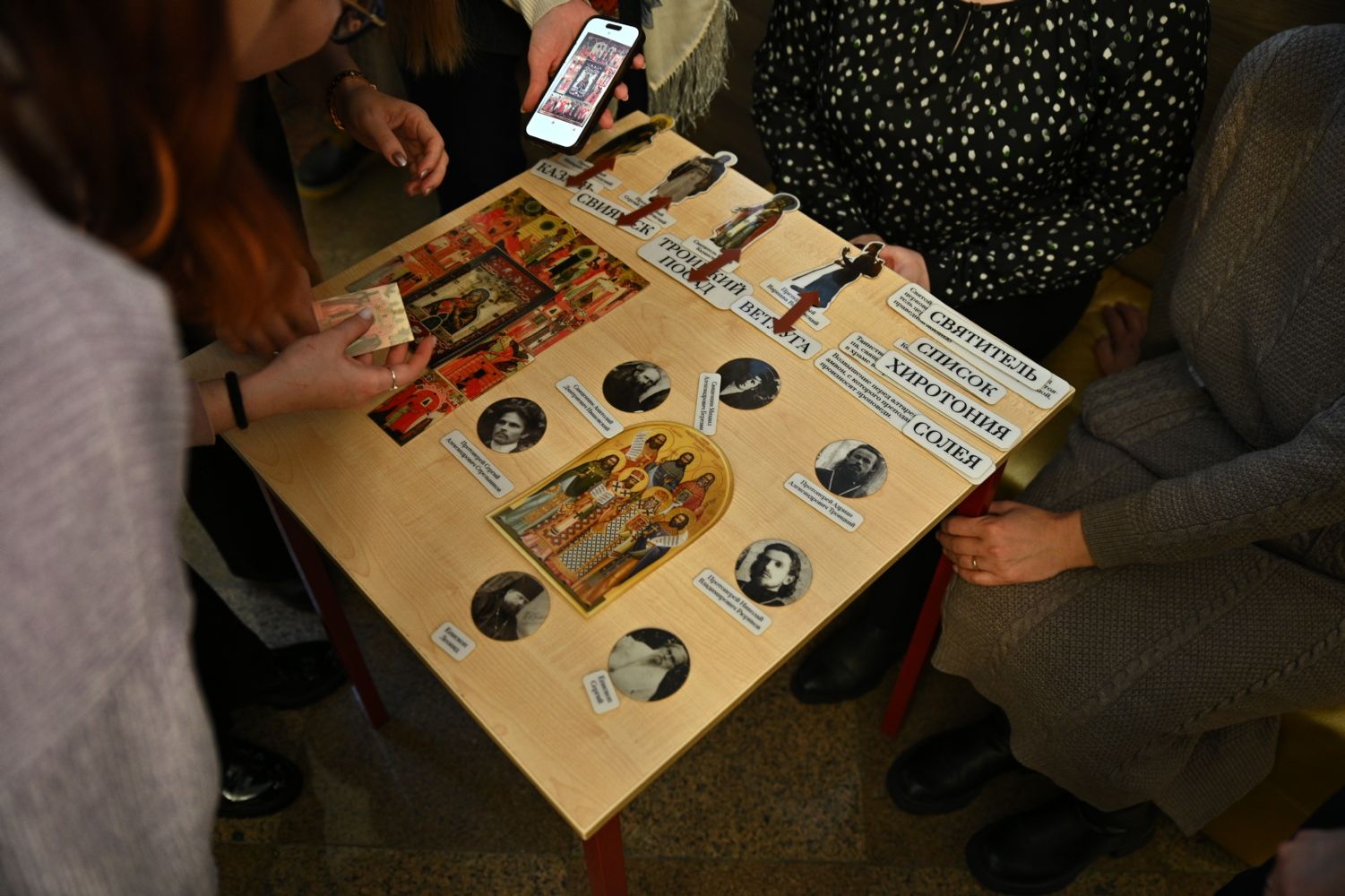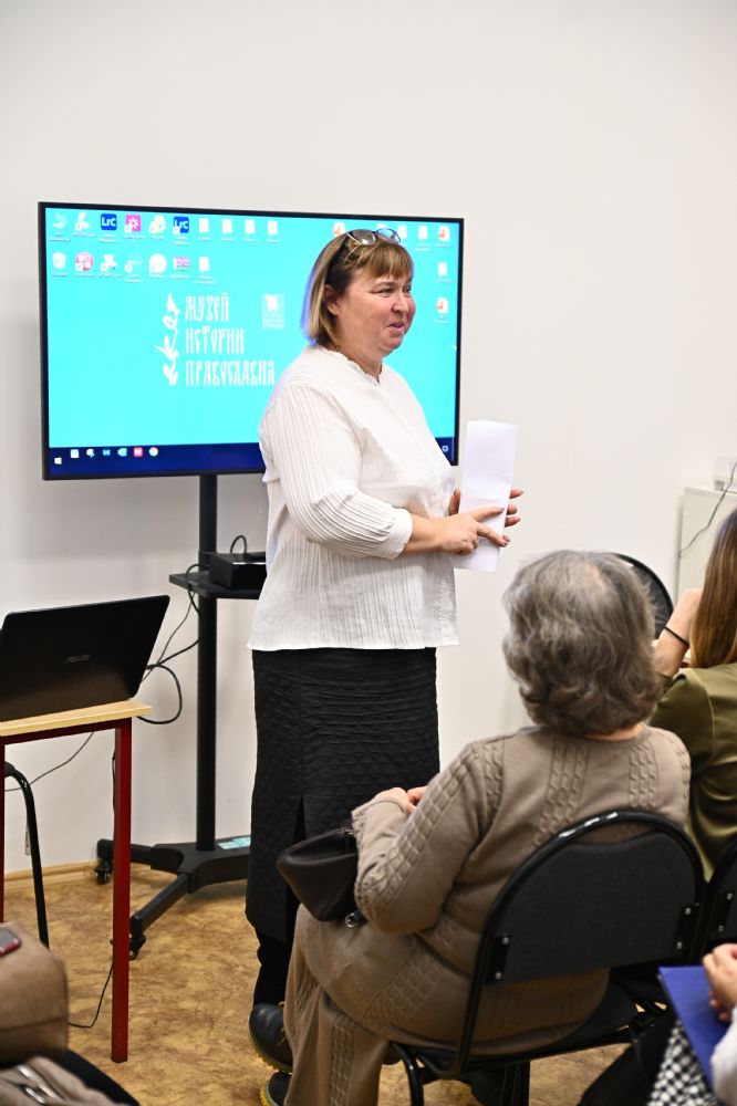 Сотрудник Музея Светлана Константиновна Каплунова представила участникам семинара передвижную выставку, посвящённую 30-летию Йошкар-Олинской епархии, а также провела для учителей программу «Путь к Свету» – педагоги с азартом разгадывали задания: собирали карту Марийской митрополии, разбирались в церковных терминах и выстраивали хронологию событий.