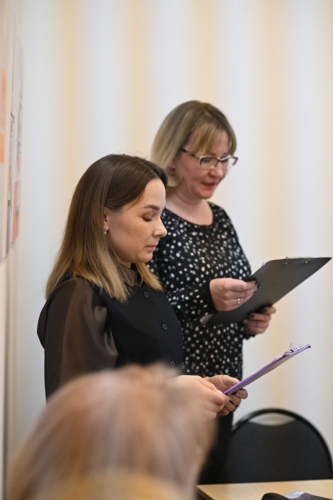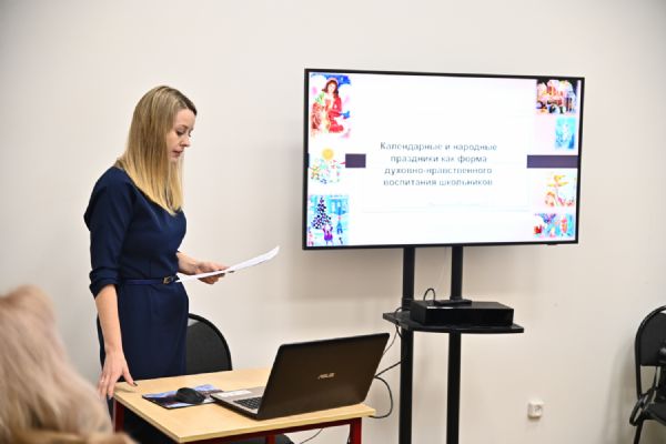 Во второй половине семинара учителя познакомили коллег со своими методическими наработками в области духовно-нравственного воспитания школьников. Темы были самые разные: «Процесс изучения истории Родины, формирование сопричастности детей и молодежи к историческим событиям (из опыта проведения городского конкурса «Служение Отечеству: события, имена»); «Роль школьного музея и школьной библиотеки в системе культурного развития и духовно-нравственного воспитания обучающихся»; «Связь духовно-нравственного воспитания в школе с национальными ценностями»; «Календарные и народные праздники как одна из форм духовно-нравственного воспитания»; «Формирование патриотических качеств младшего школьника в урочной и внеурочной деятельности».