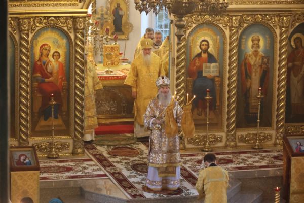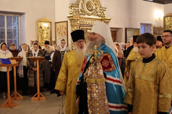 19 декабря, в день памяти святителя Николая, архиепископа Мир Ликийских, чудотворца, митрополит Йошкар-Олинский и Марийский Иоанн, епископ Волжский и Сернурский Феофан и епископ Минусинский и Курагинский Серафим совершили Божественную литургию в Никольском кафедральном соборе г. Волжска.