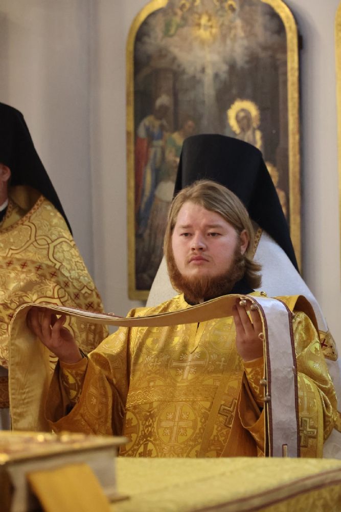 Архипастырям сослужили благочинный Волжского церковного округа иерей Алексий Скрябин, духовник Волжской епархии иеромонах Иоанн (Панин), клирики Волжской епархии протоиерей Виталий Михеев, иерей Николай Аникин, иеромонах Александр (Чеборов), иеромонах Авель (Крашенинников), иерей Сергий Першаков, иерей Андрей Легостаев, иеромонах Питирим (Мосякин), диакон Иоанн Захаров и диакон Александр Викторов, а также клирики Йошкар-Олинской епархии иерей Никита Иванов и протодиакон Михаил Козловский. Песнопения исполняли два хора: архиерейский (регент Любовь Михеева) и народный под управлением Евгения Чигарова.