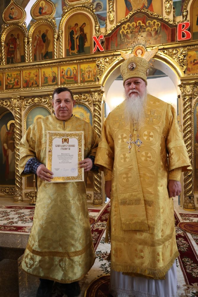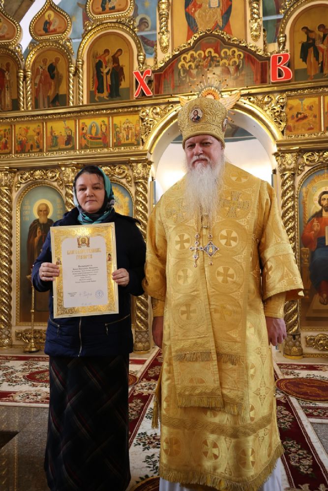 В завершение епископ Феофан наградил благодарственными грамотами благодетелей и благоукрасителей Никольского кафедрального собора.