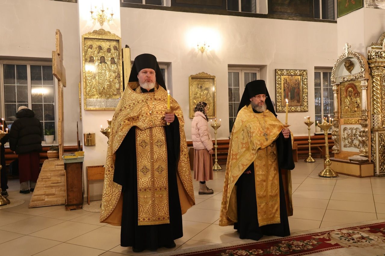 Его Преосвященству сослужили клирики собора иерей Николай Аникин, иеромонах Александр (Чеборов), иеромонах Авель (Крашенинников), иеромонах Питирим (Мосякин), диакон Иоанн Захаров и диакон Александр Викторов. Песнопения исполнял архиерейский хор под управлением Любови Михеевой.