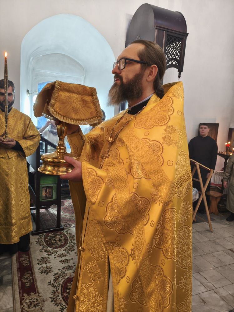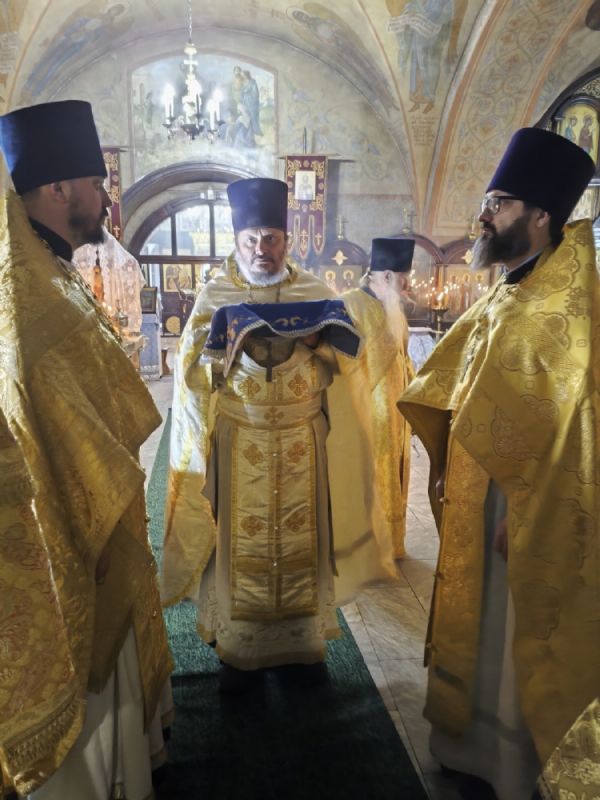 Архипастырю сослужили секретарь Йошкар-Олинского епархиального управления иерей Димитрий Дьяков, настоятель Покровского храма иерей Алексий Леонов, настоятель Никольского храма г. Звенигово иерей Антоний Блинов и протодиакон Михаил Козловский. Песнопения исполнял хор под управлением Ирины Айгловой.