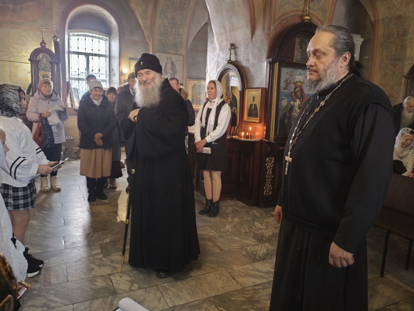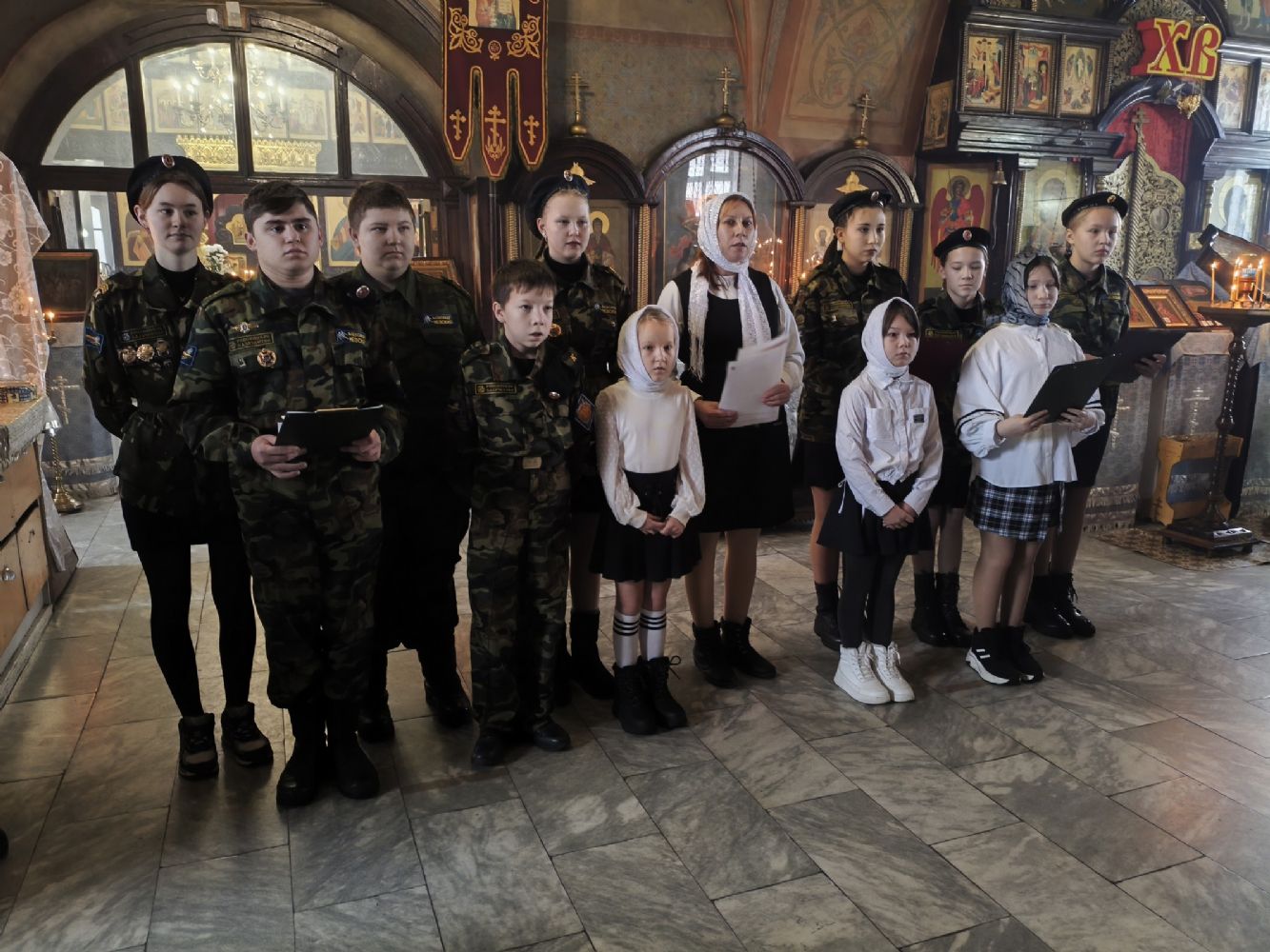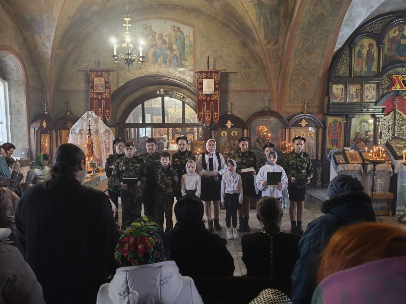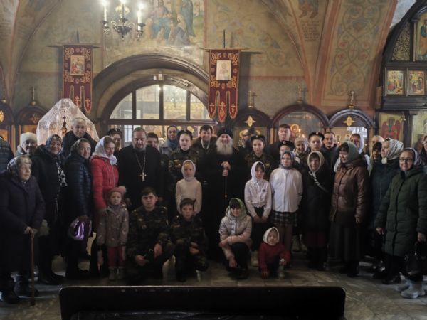 После Литургии с небольшим концертом перед собравшимися выступили воспитанники воскресной школы храма и кадеты ВПК «Святой благоверный князь Александр Невский», а владыка одарил детей сладостями.