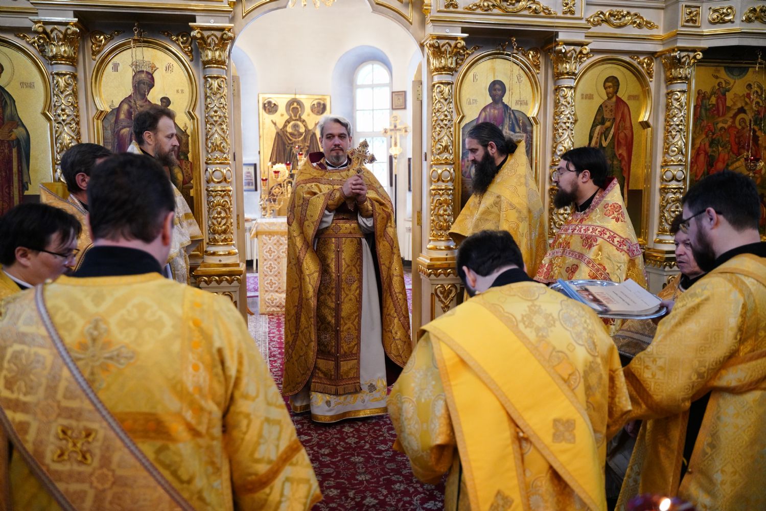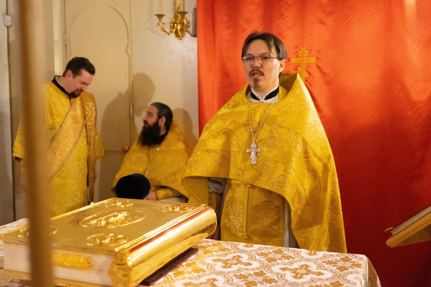 В праздничный день в храме была совершена соборная Божественная литургия, возглавил которую настоятель храма иерей Александр Лоскутов. Ему сослужили клирики храма иерей Никита Смирнов, иерей Евгений Симаков и диакон Даниил Зорин, а также клирик храма Державной иконы Божией Матери п. Медведево иерей Алексий Добиков, настоятель Петропавловского храма с. Верх-Ушнур иерей Алексий Тарасов, настоятель Богоявленского храма с. Великополье иерей Олег Михайлов, клирик храма Всех святых в земле Российской просиявших п. Советский иерей Димитрий Кудряшов, клирик Воскресенского собора диакон Алексий Кузнецов и клирик Благовещенского кафедрального собора диакон Артемий Бобоч. Песнопения исполнял хор храма под управлением регента Натальи Поповой.