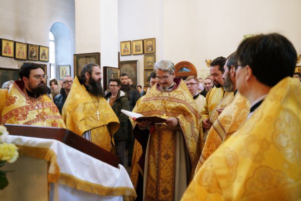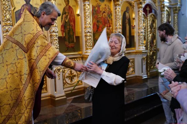 По окончании Литургии с 10-летием храма его настоятеля тепло поздравили собратья по алтарю, прихожане, православные добровольцы.