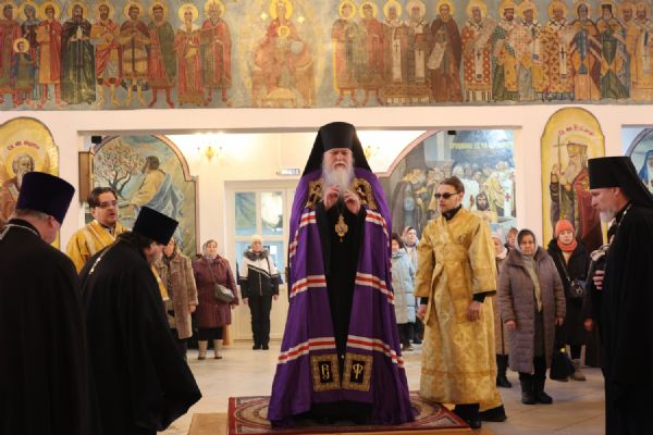 28 декабря, в Неделю 29-ю по Пятидесятнице, святых праотец, епископ Волжский и Сернурский Феофан совершил Божественную литургию в Никольском кафедральном соборе г. Волжска. Накануне владыка возглавил здесь же всенощное бдение.