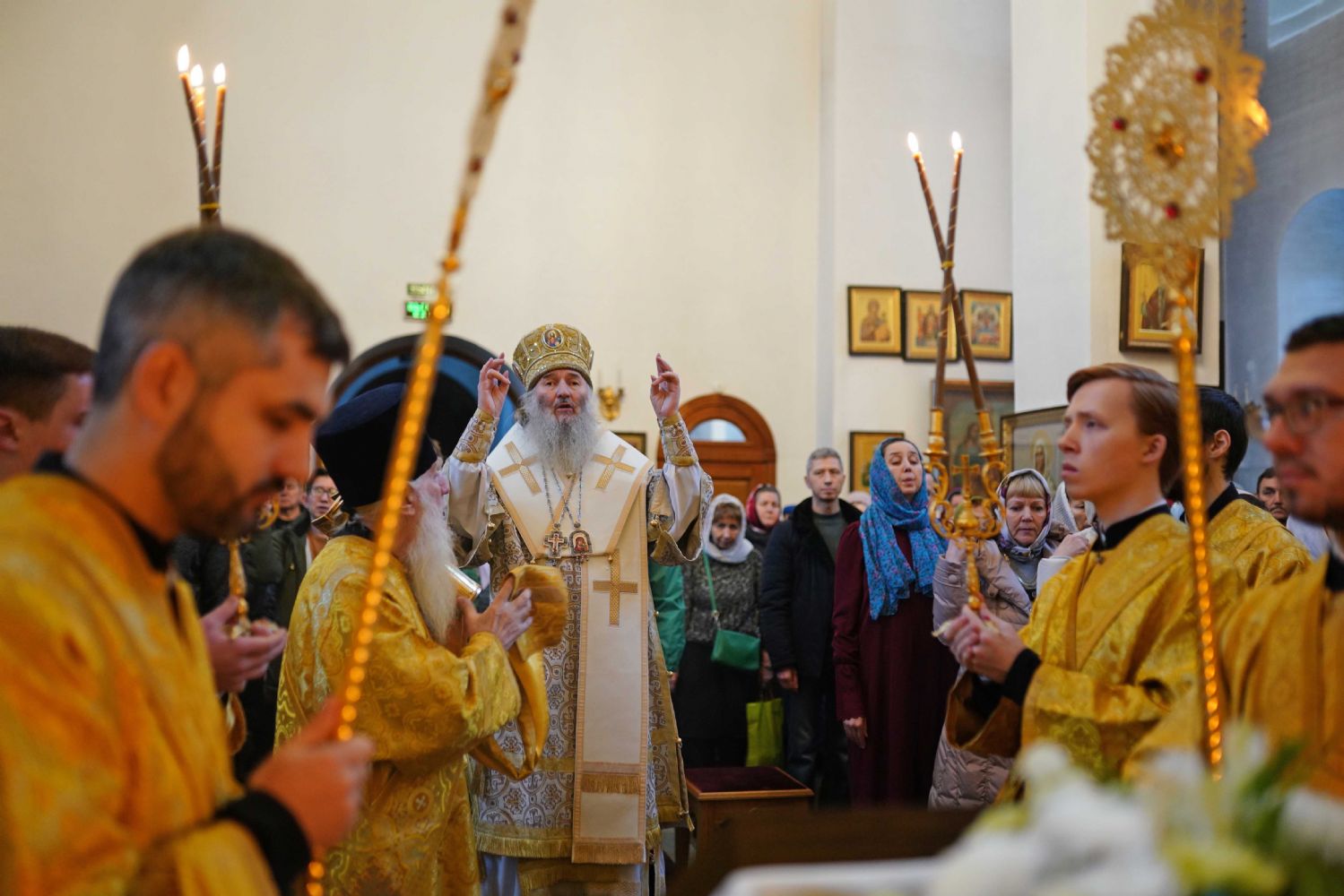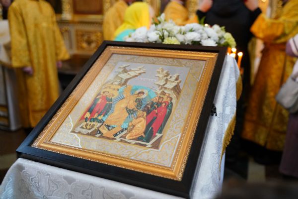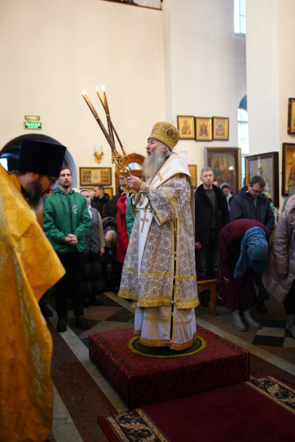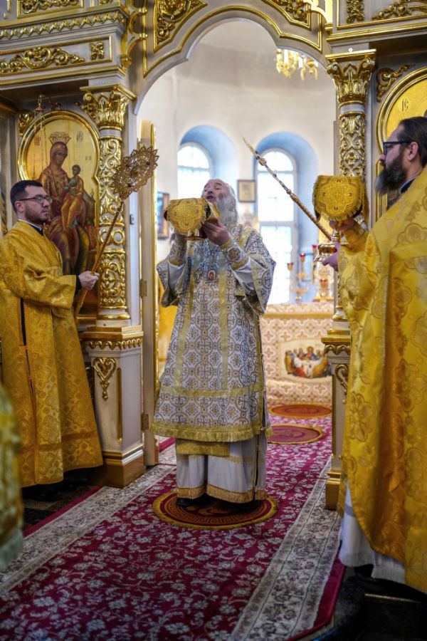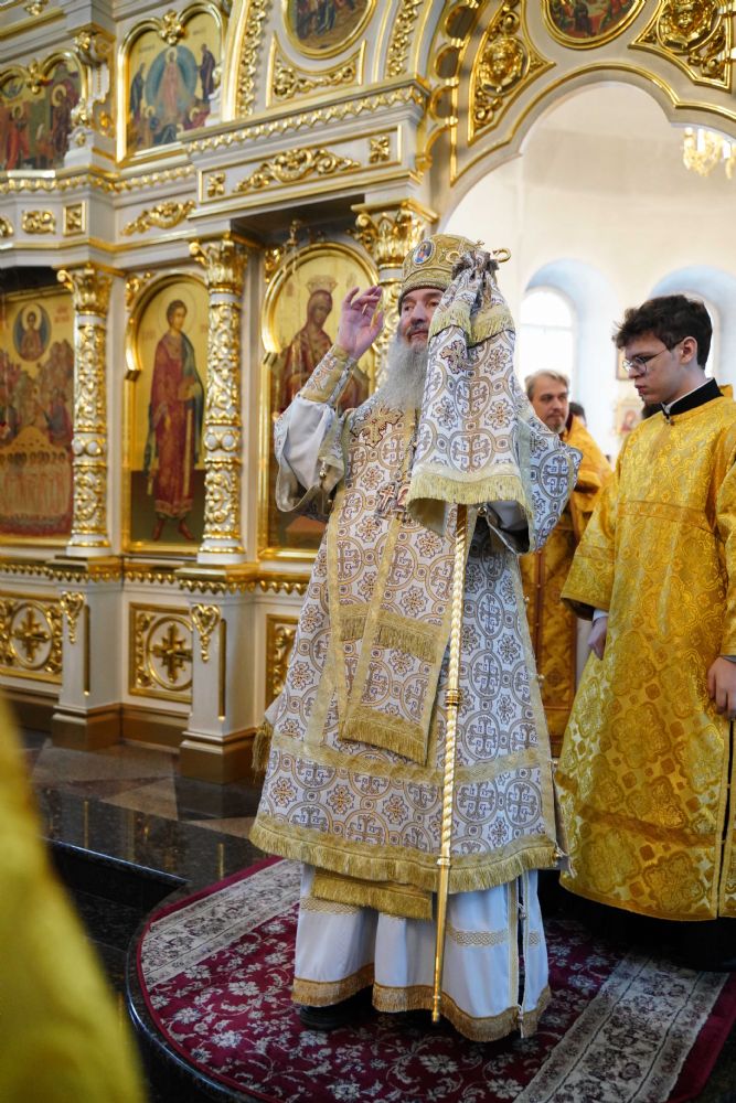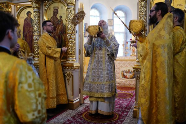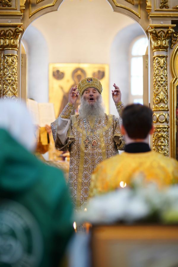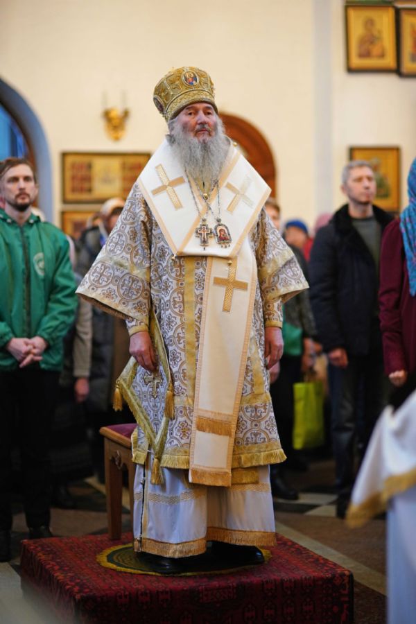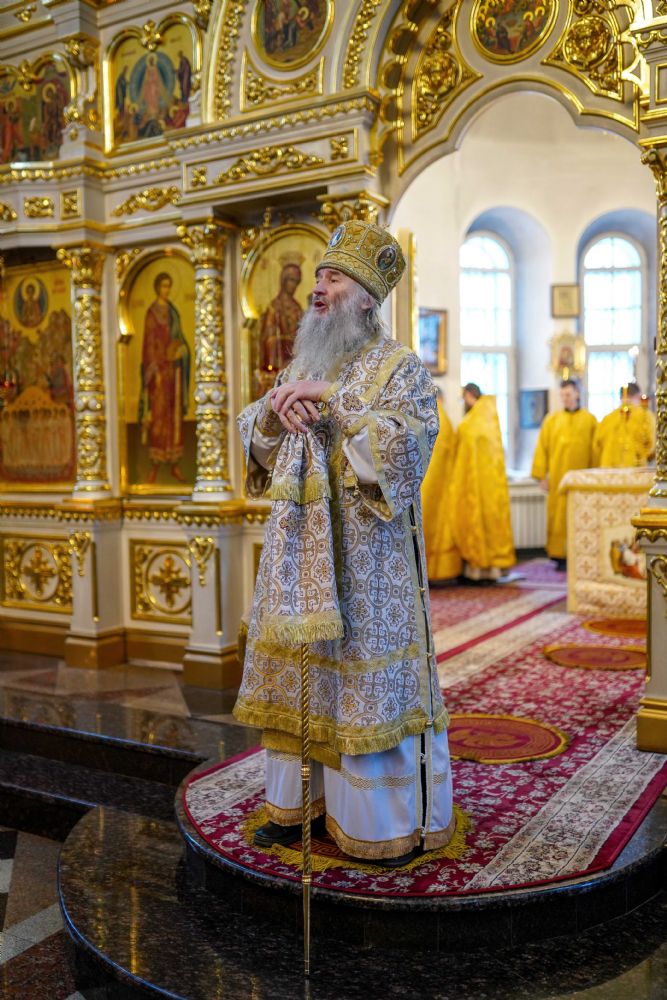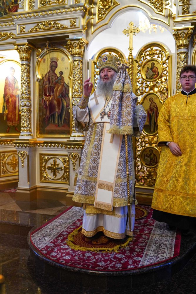 После чтения Евангелия митрополит Иоанн обратился к собравшимся с проповедью, разъяснив духовный смысл прочитанного за богослужением евангельского зачала о званных на пир.