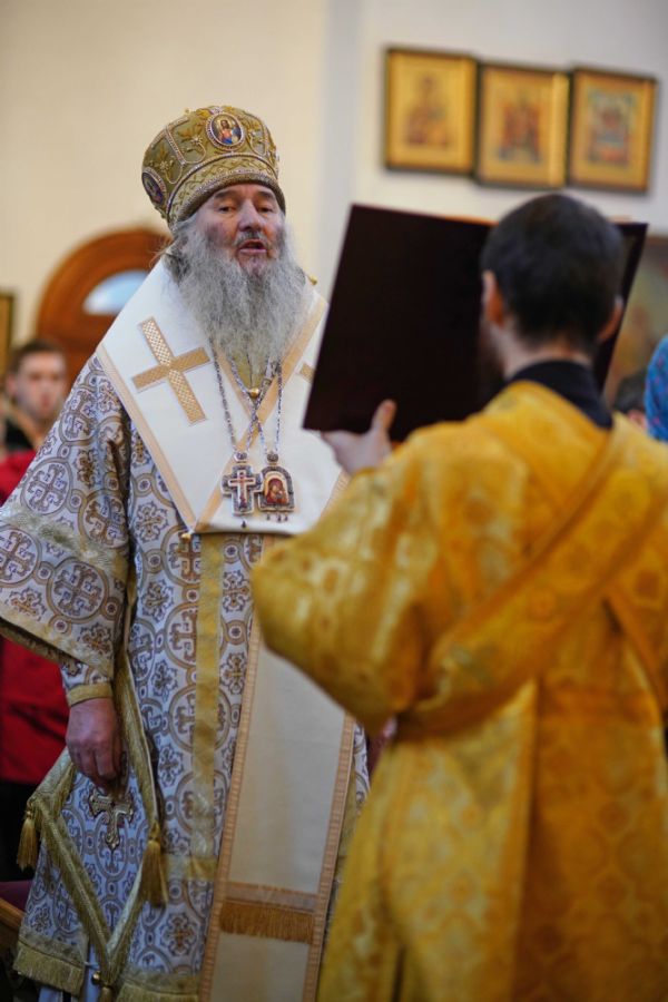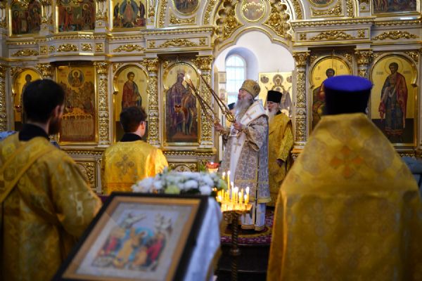 Архипастырю сослужили секретарь Йошкар-Олинского епархиального управления иерей Димитрий Дьяков, настоятель храма иерей Александр Лоскутов, клирик храма диакон Даниил Зорин, а также протодиакон Михаил Козловский. Песнопения исполнял хор храма под управлением Натальи Поповой.