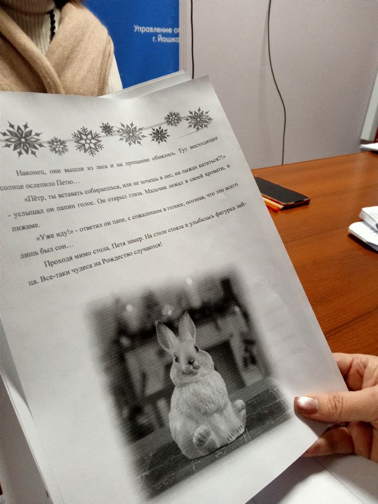 В конце декабря жюри в составе педагогов школ города: Петуховой Светланы Викторовны, учителя начальных классов средней общеобразовательной школы № 2; Вырупаевой Марины Дмитриевны, педагога-библиотекаря, учителя русского языка и литературы средней общеобразовательной школы № 10; Серебряковой Любови Валентиновны, учителя русского языка и литературы средней общеобразовательной школы № 2, а также сотрудников отдела дополнительного образования и воспитания Управления образования города: Кузнецовой Татьяны Геннадьевны, начальника отдела, Неженцевой Анастасии Алексеевны, главного специалиста отдела, и Сарыниной Виктории Яковлевны, сотрудника Отдела религиозного образования и катехизации Йошкар-Олинского благочиния Йошкар-Олинской епархии, подвело итоги творческого конкурса.
