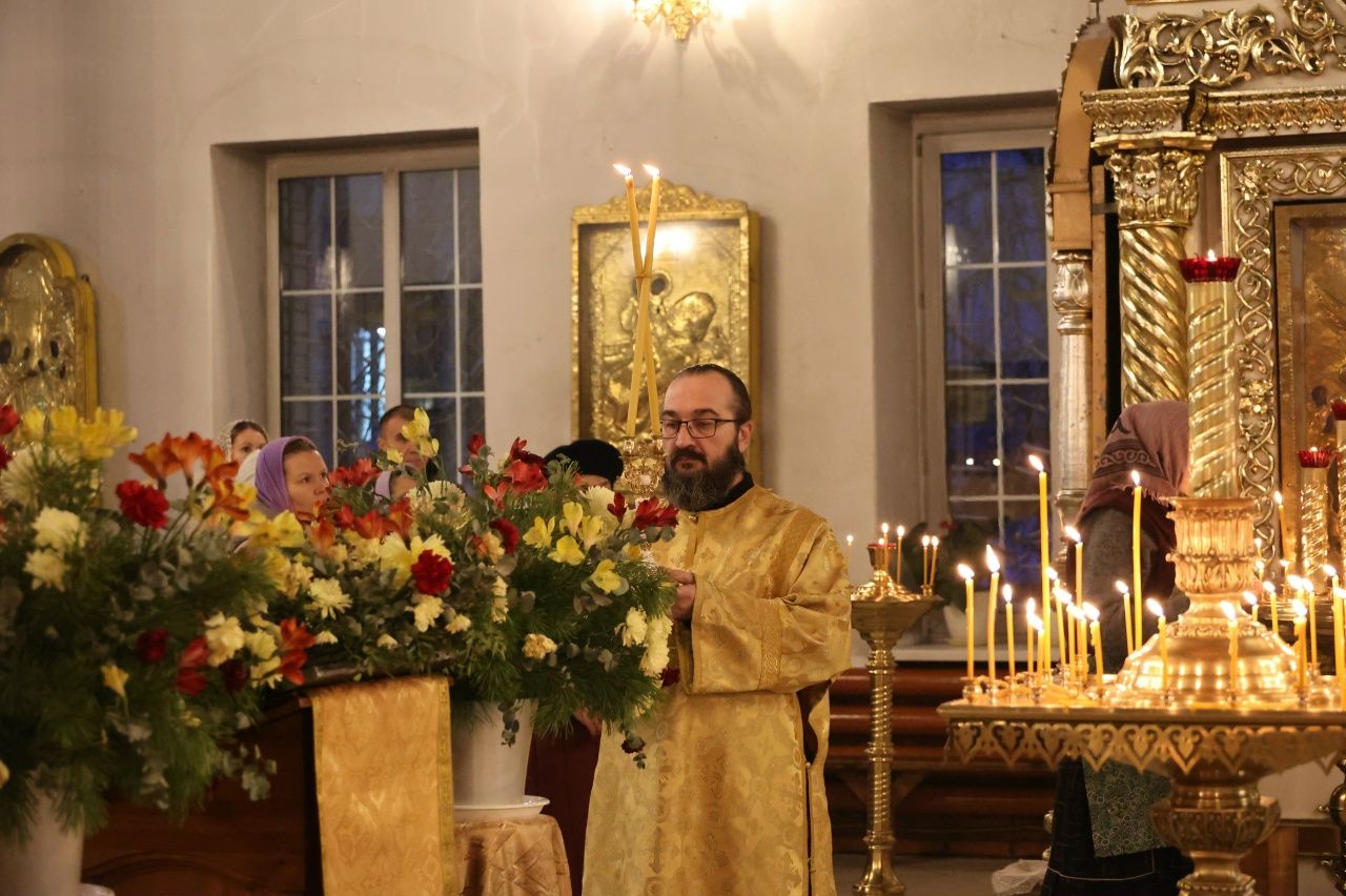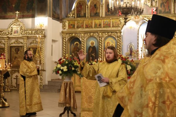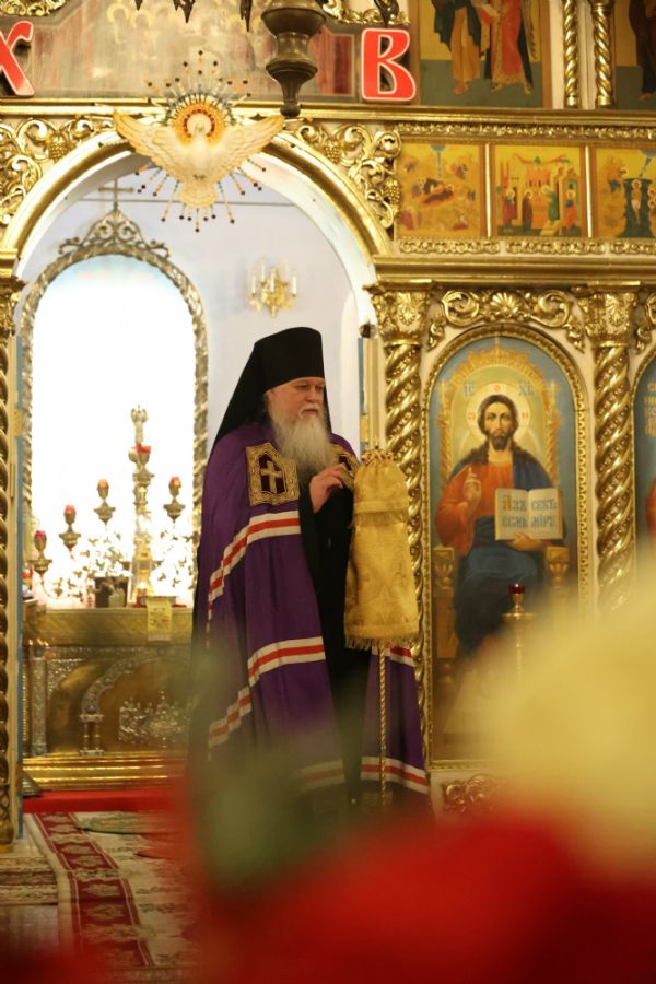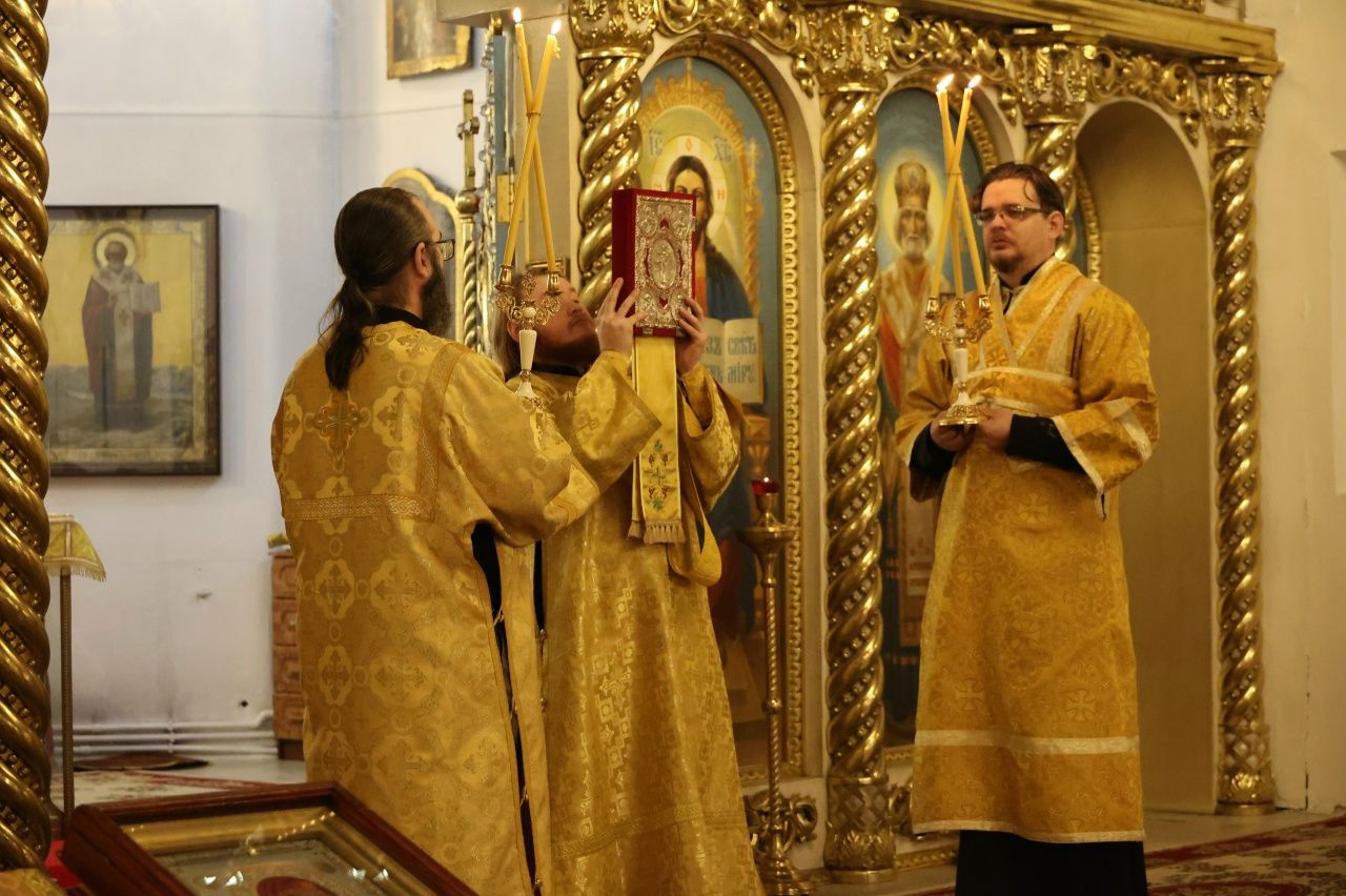 Его Преосвященству сослужили клирики собора протоиерей Виталий Михеев, иерей Николай Аникин, иеромонах Александр (Чеборов), иерей Сергий Першаков, иеромонах Питирим (Мосякин) и диакон Александр Викторов. Песнопения исполнял народный хор под управлением Евгения Чигарова.