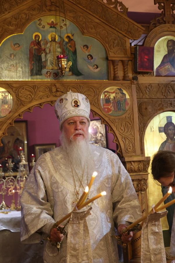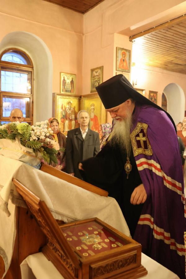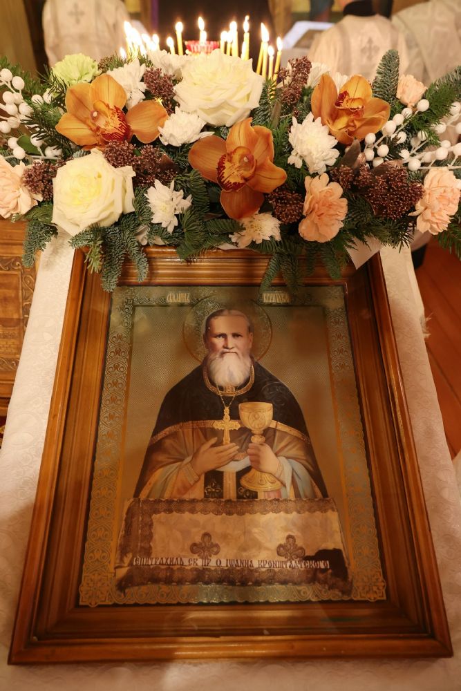 По окончании Литургии епископ Феофан совершил славление и вознес молитву перед образом святого праведного Иоанна Кронштадтского.