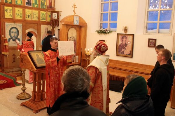 За богослужением молились начальник УФСИН России по Республике Марий Эл полковник внутренней службы М.Н. Каминский и начальник колонии-поселения подполковник внутренней службы А.С. Ковенков. Службу посетили свыше 20 осужденных, желающие смогли исповедоваться и причаститься Святых Христовых Таин.