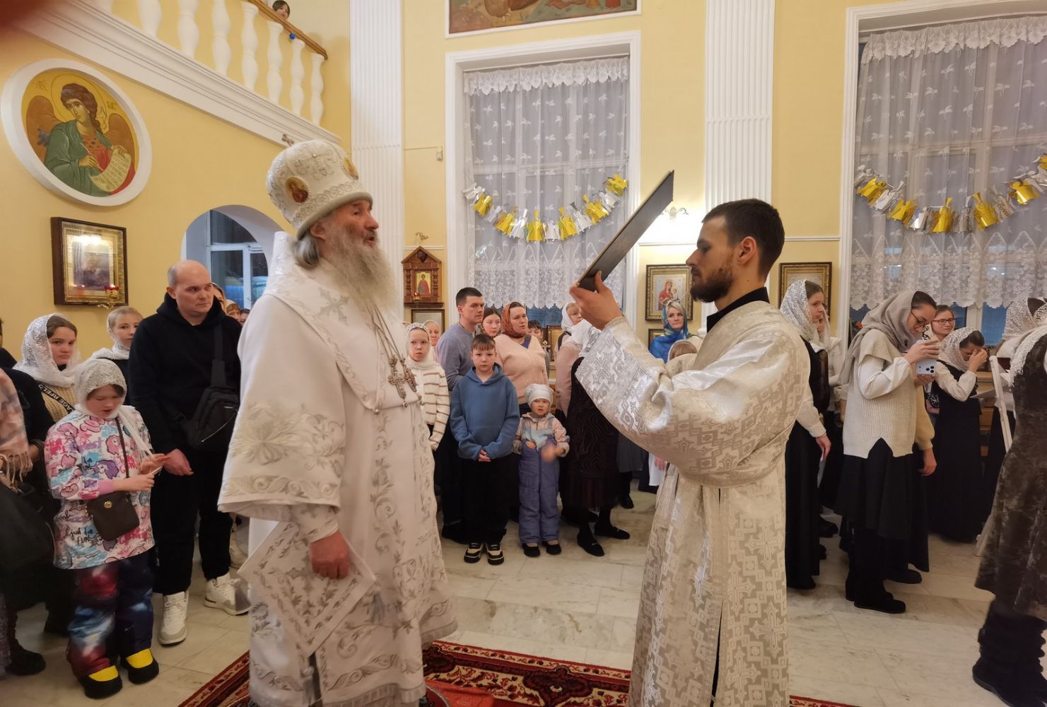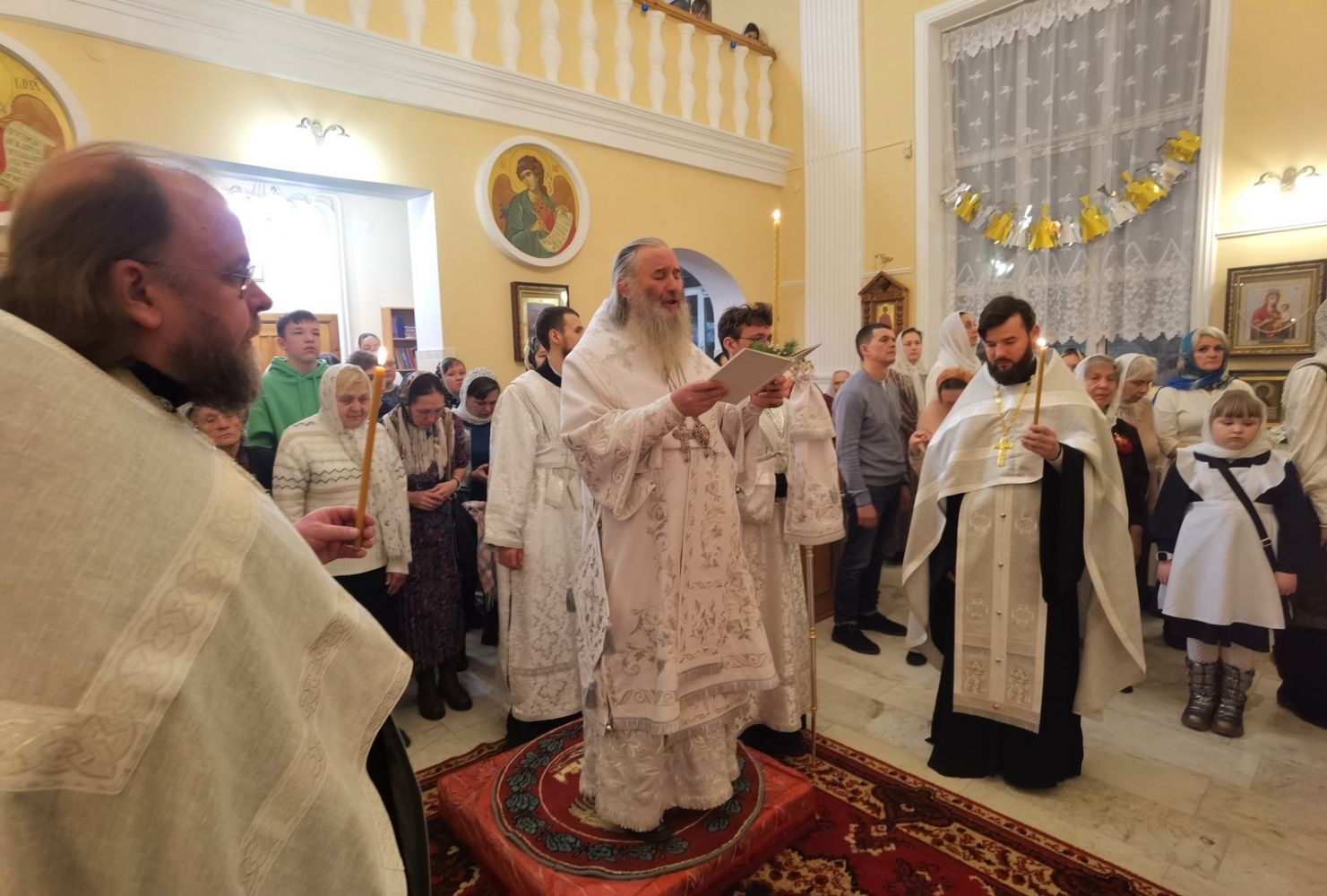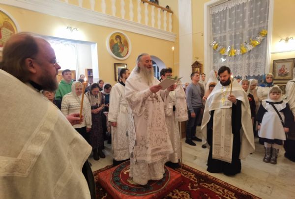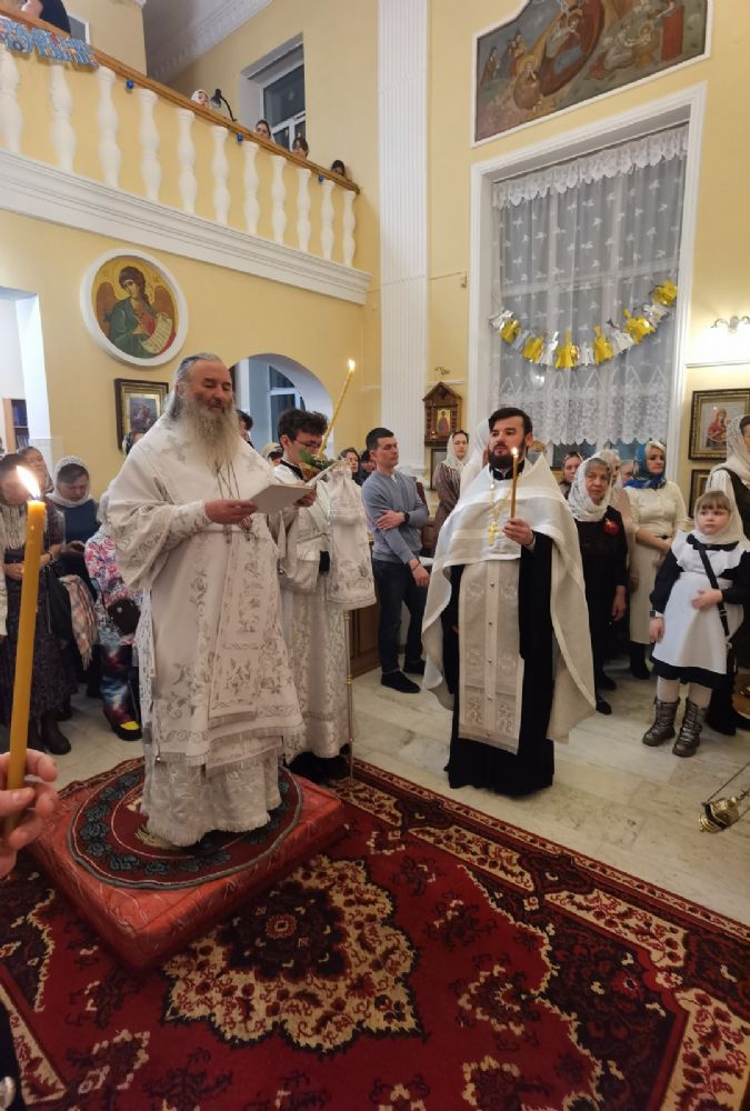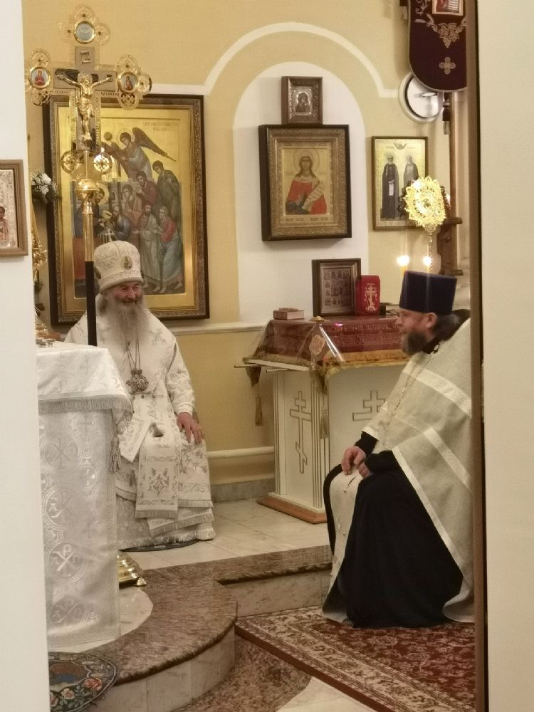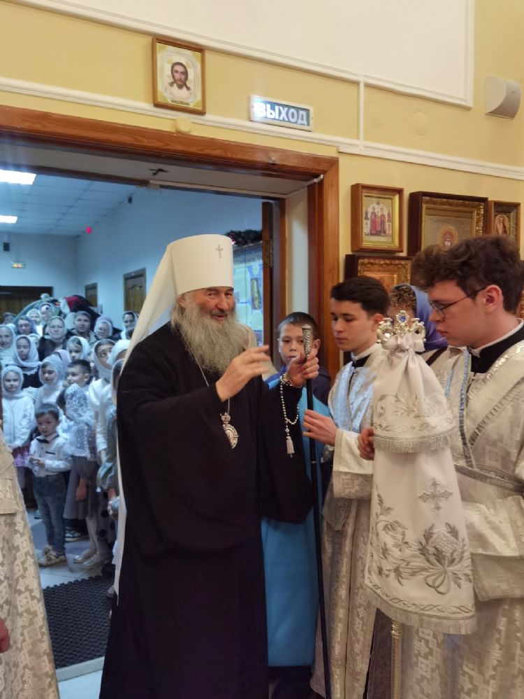 Богослужение началось встречей владыки и облачением в центре храма.