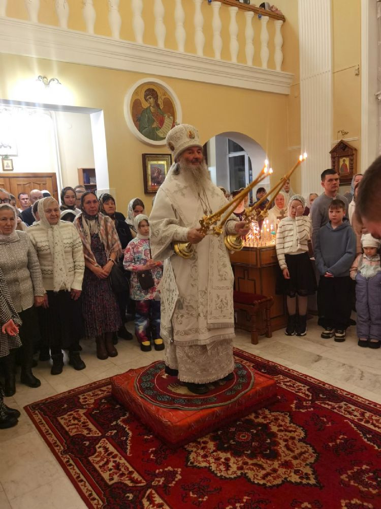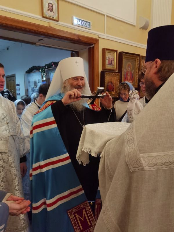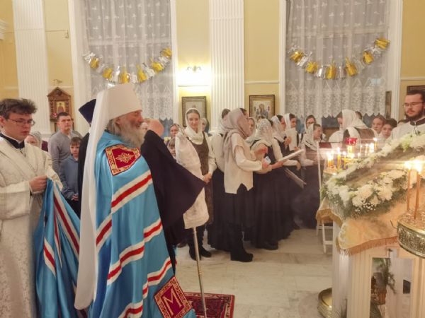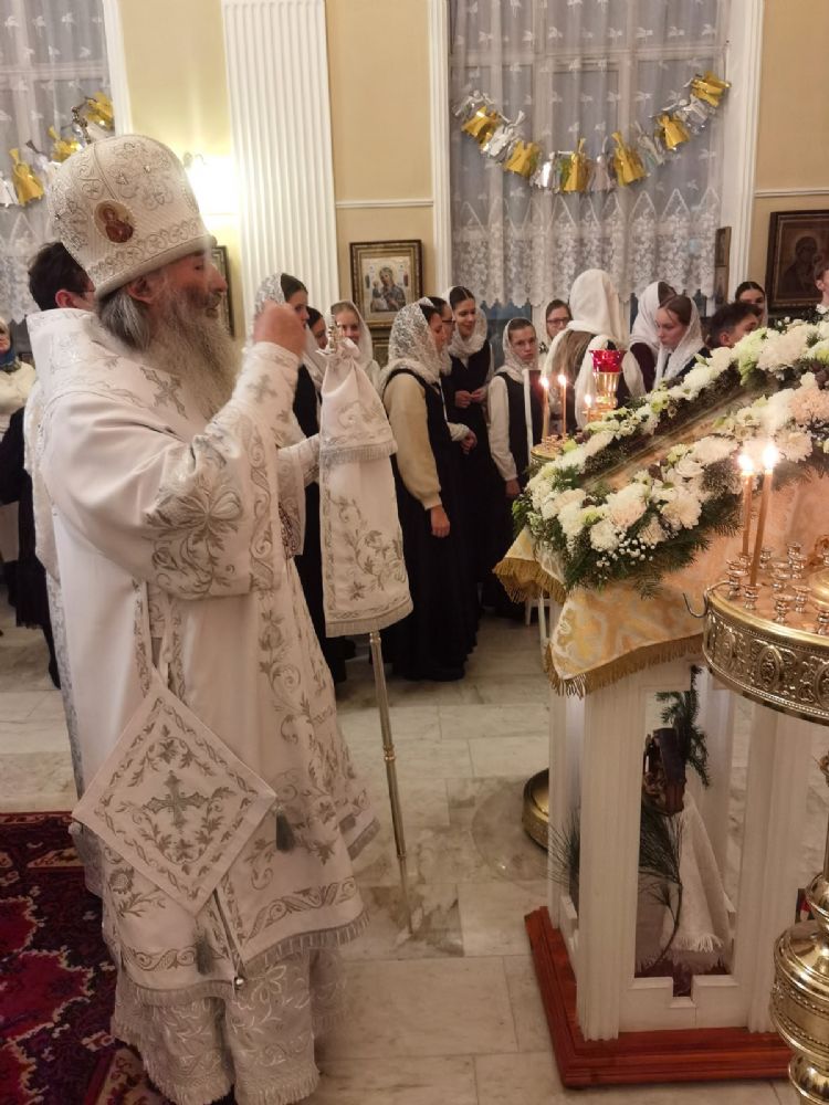 По завершении богослужения митрополит Иоанн обратился к собравшимся с архипастырским словом, рассказав о событиях праздника Рождества Христова и его духовном смысле.