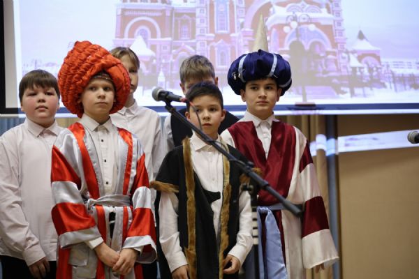 8 января в Православном центре г. Йошкар-Олы состоялся рождественский утренник воспитанников трех воскресных школ – имени священномученика Леонида, Троицкого храма и архиерейского детско-юношеского хора «Благовест».