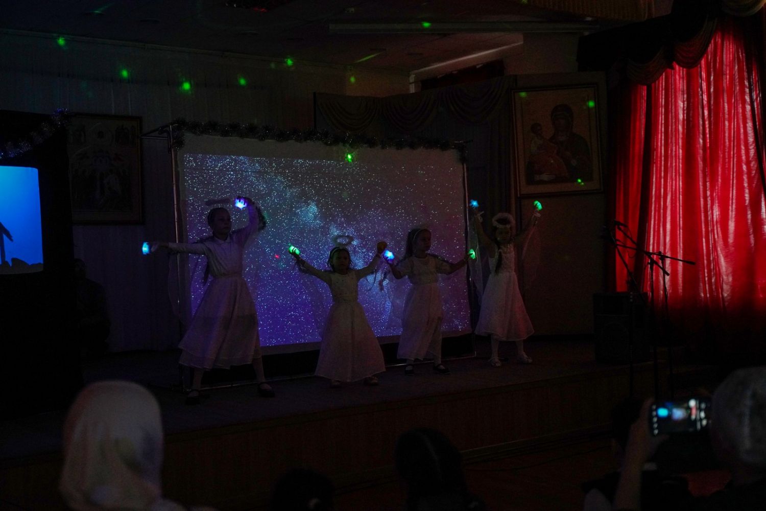 Программа концерта была яркой и насыщенной: рождественские песни, стихи и колядки, спектакль на евангельскую тематику, представление теневого театра. Праздник получился теплым и душевным – ребята через свои искренние выступления сумели передать святочное настроение зрителям.