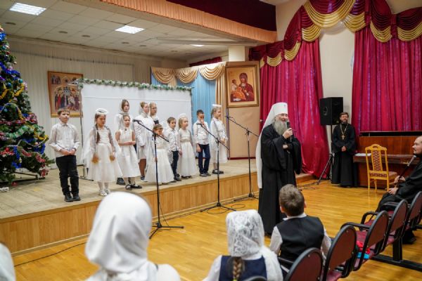 После концерта владыка Иоанн поздравил всех со светлым праздником Рождества Христова и Собором Пречистой Богоматери и вручил юным актерам сладкие подарки.