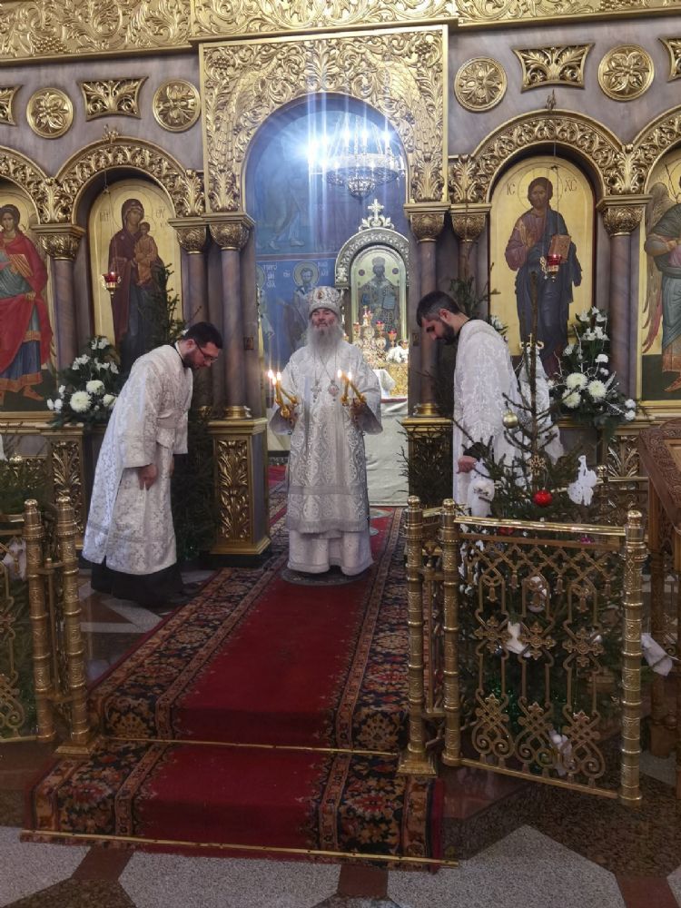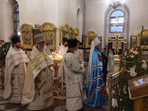 По окончании Литургии митрополит Иоанн обратился к собравшимся с архипастырским словом, поздравив всех со святыми рождественскими днями.