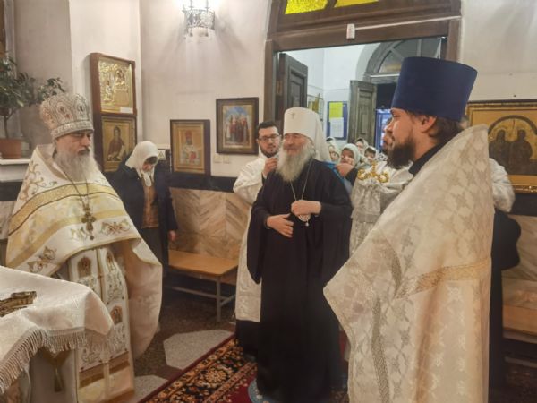 Его Высокопреосвященству сослужили настоятель храма протоиерей Сергий Филонов, клирики храма протоиерей Василий Лихачев, иерей Никита Иванов, иерей Вячеслав Булычев и диакон Александр Мельников, а также протодиакон Михаил Козловский. Песнопения исполнял хор храма под управлением Софии Андреевой.