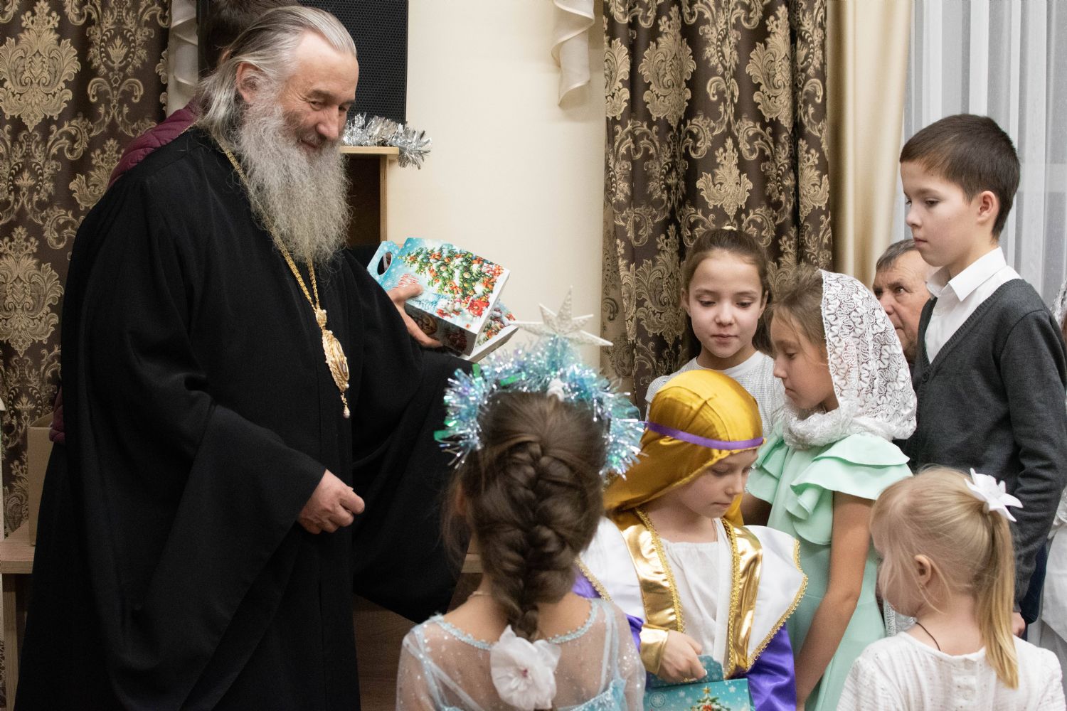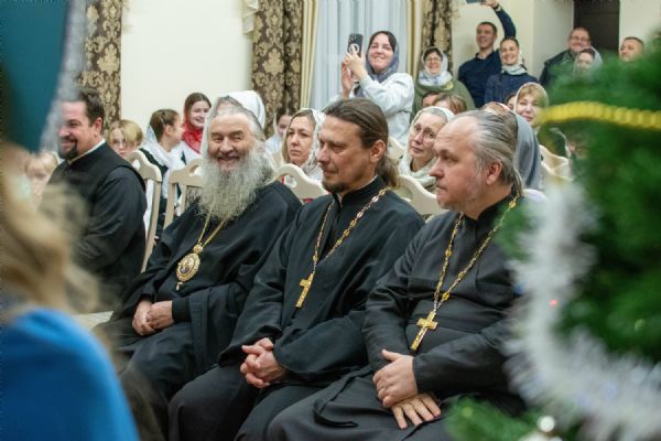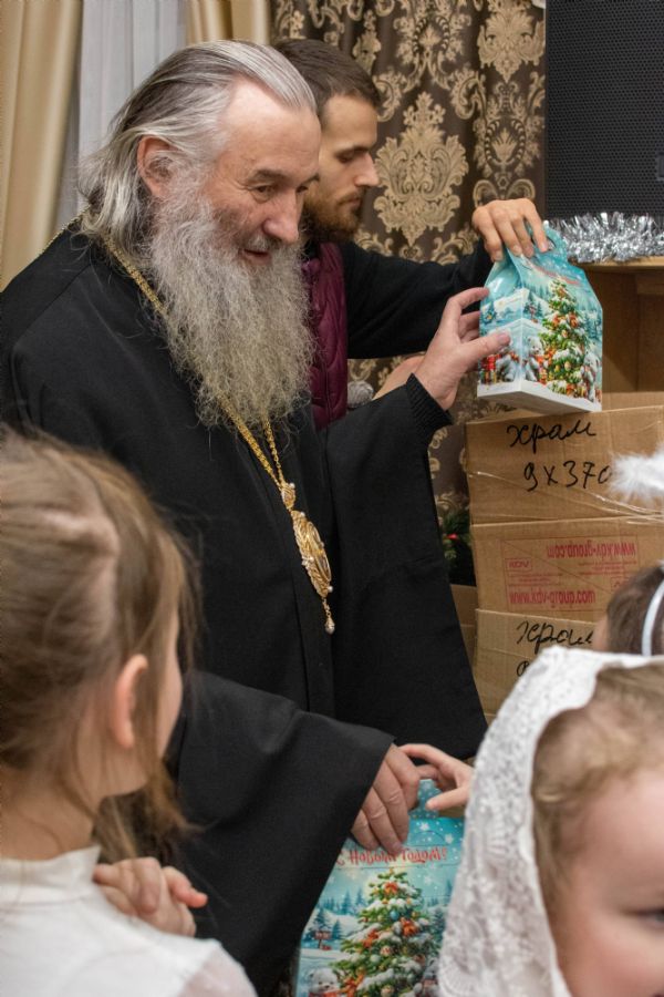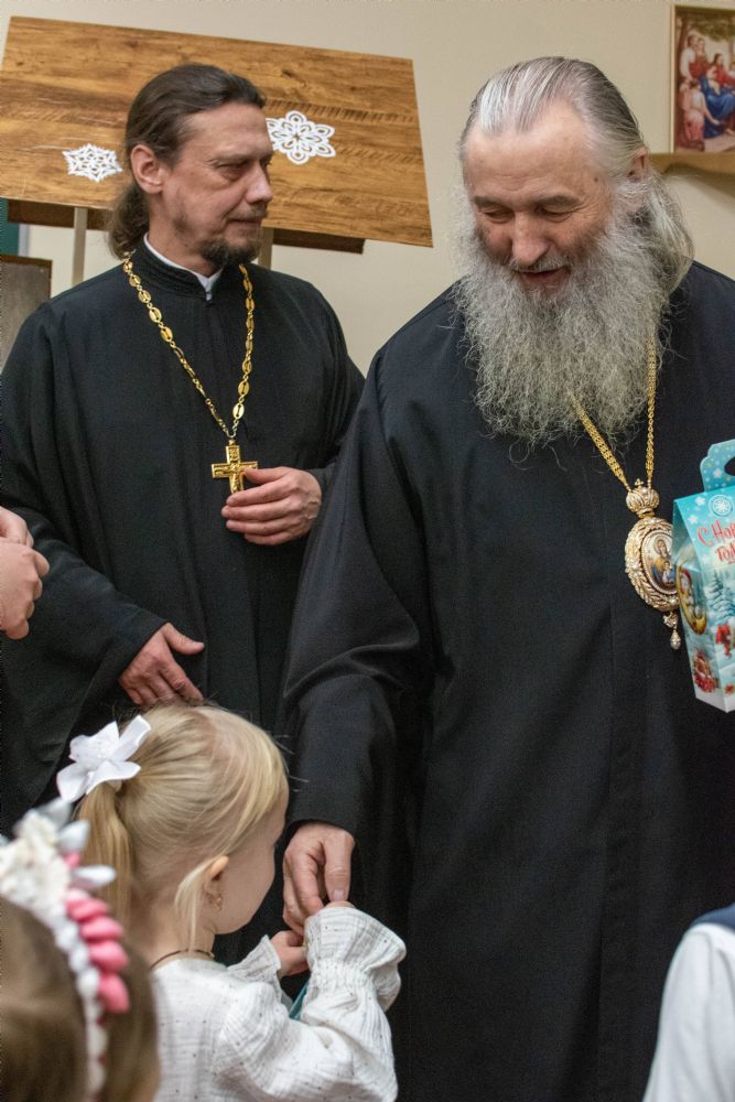По завершении богослужения митрополит Иоанн посетил рождественское представление воспитанников воскресной школы храма. Всем ребятам владыка вручил сладкие подарки.