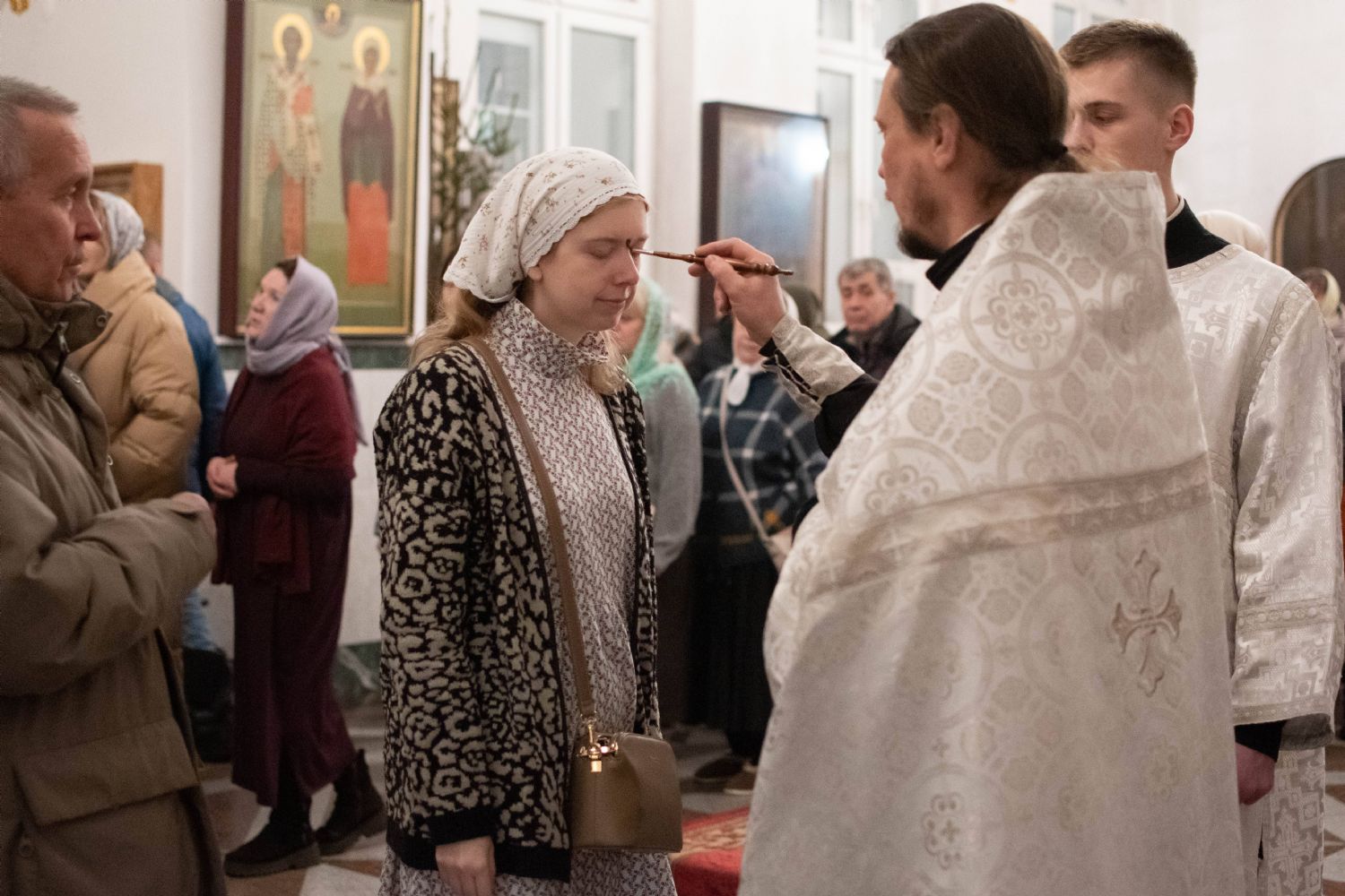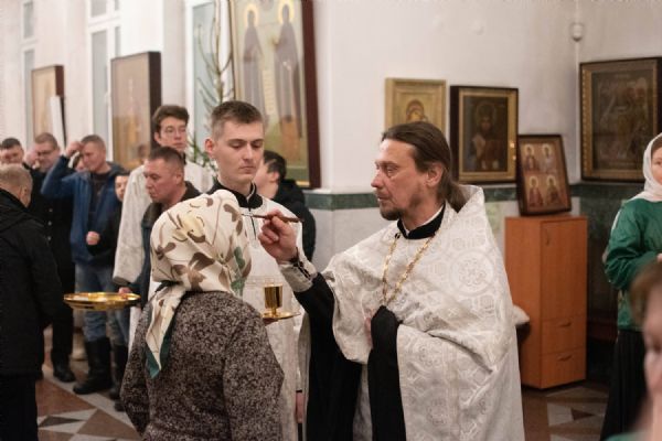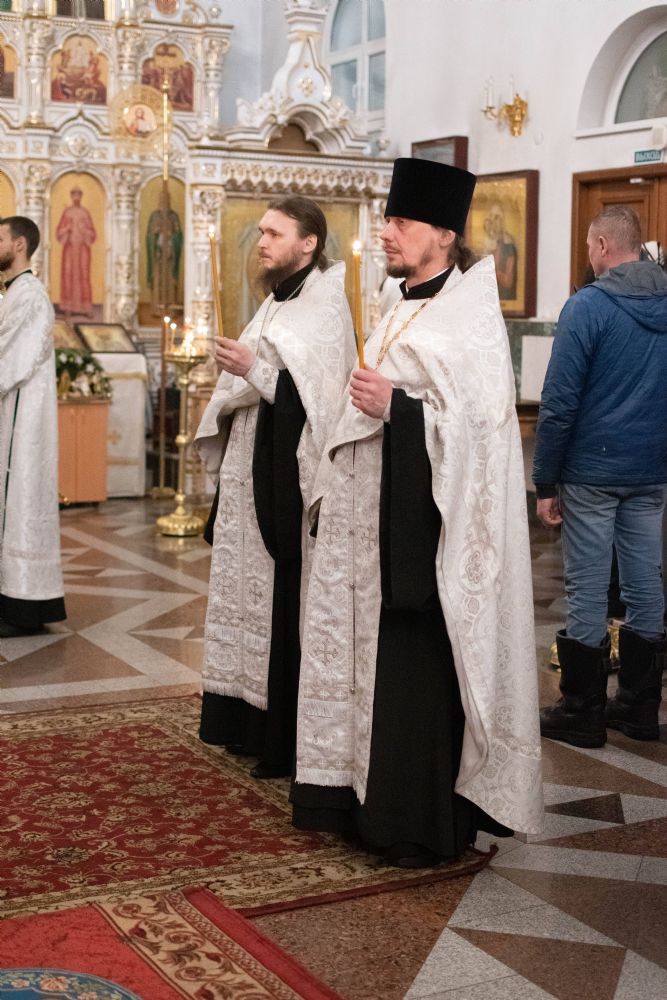 Архипастырю сослужили настоятель собора иерей Андрей Кочаков, клирики собора иерей Леонид Вылекжанин, иерей Димитрий Лукьянов и диакон Алексий Кузнецов, а также протодиакон Михаил Козловский. Песнопения исполнял хор собора под управлением регента Алисы Вылегжаниной. После чтения Евангелия верующие помазывались освященным елеем.
