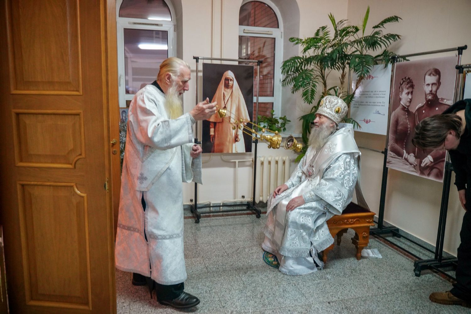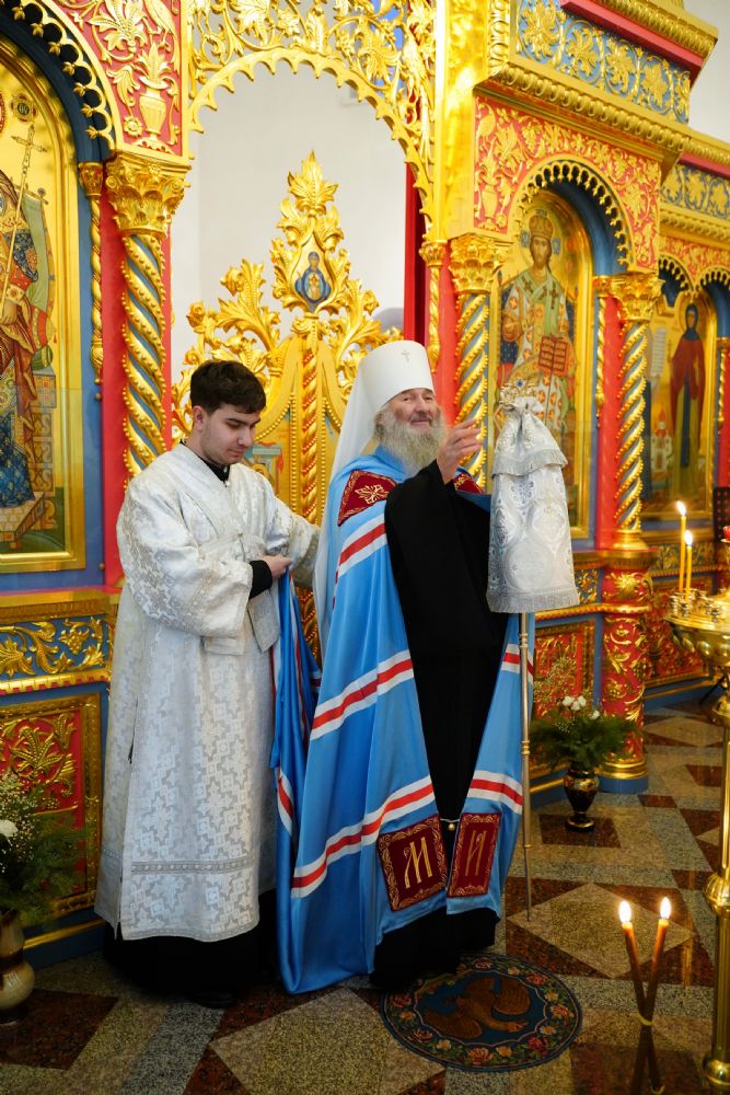За праздничной вечерней митрополиту Йошкар-Олинскому и Марийскому Иоанну сослужили ключарь Благовещенского кафедрального собора, директор Православного центра протоиерей Сергий Поглазов, руководитель епархиального отдела социального служения и церковной благотворительности иерей Алексий Михеев и протодиакон Михаил Козловский. Песнопения исполнял хор сестричества под управлением Елены Яровиковой.