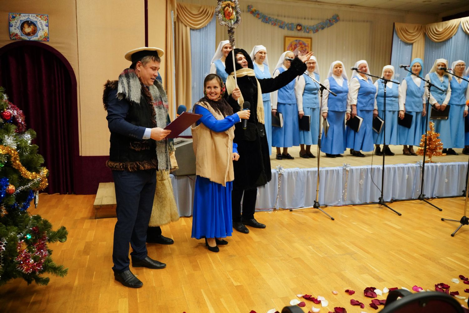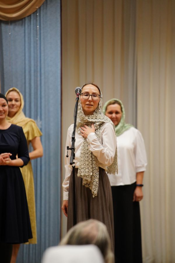 Концертная программа, которую вели актриса республиканского ТЮЗа Любовь Купсольцева и артист театра им. Шкетана Алексей Тетерин, началась с выступления хора сестричества под руководством регента Ларисы Максимовой – они исполнили рождественские песни на русском и марийском языках.
