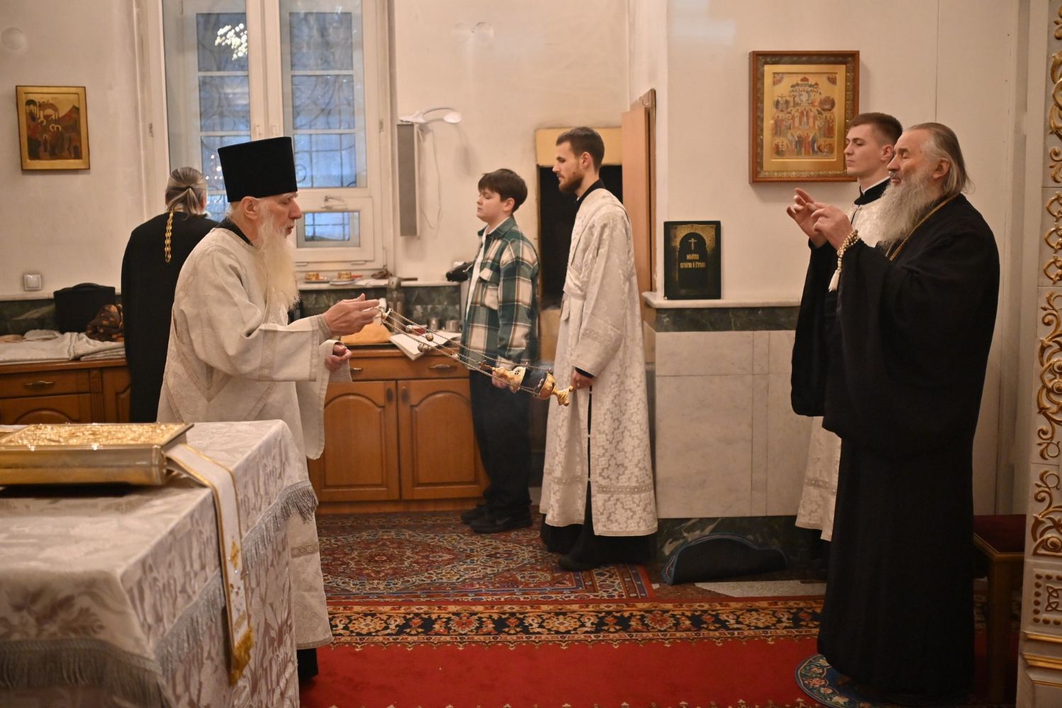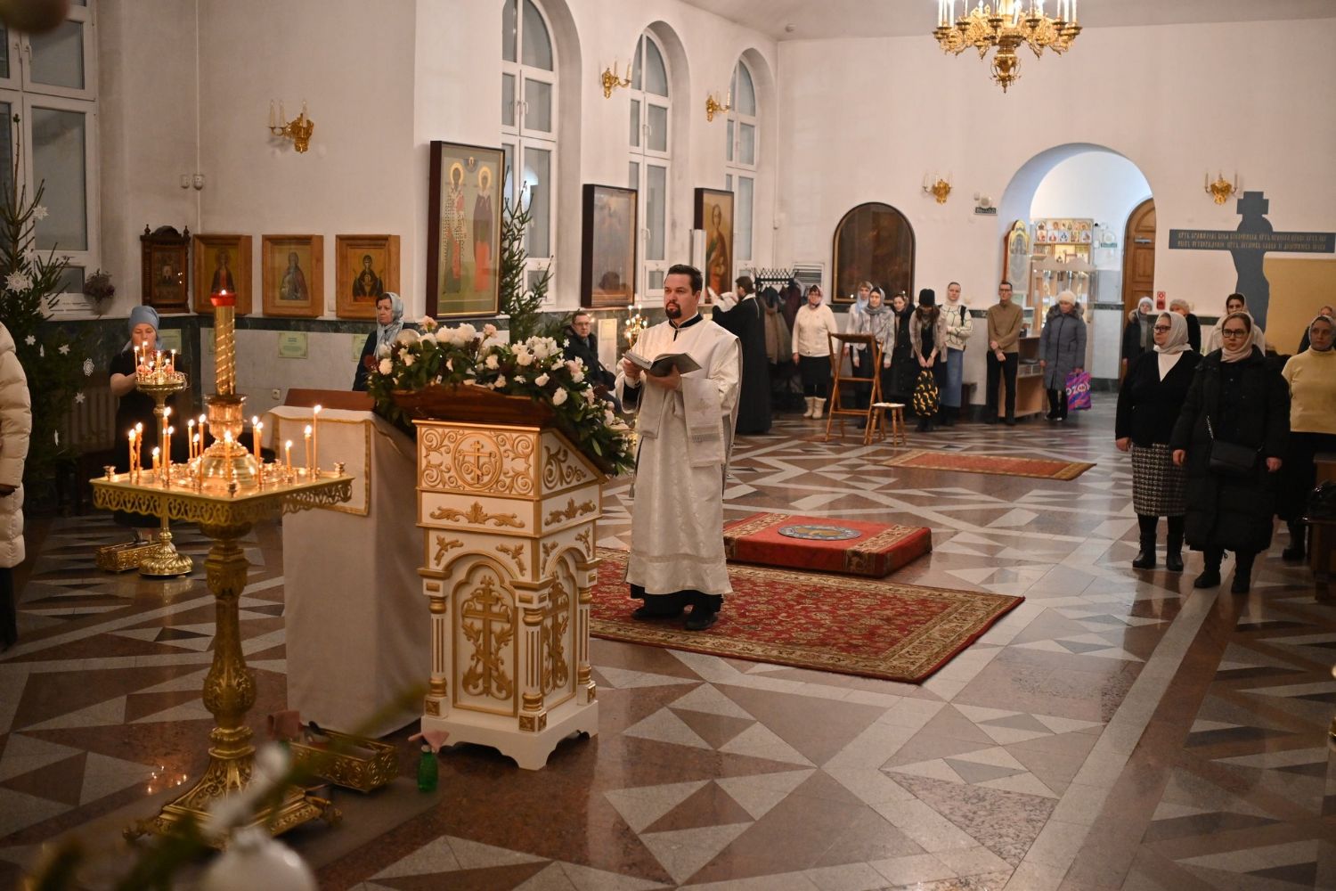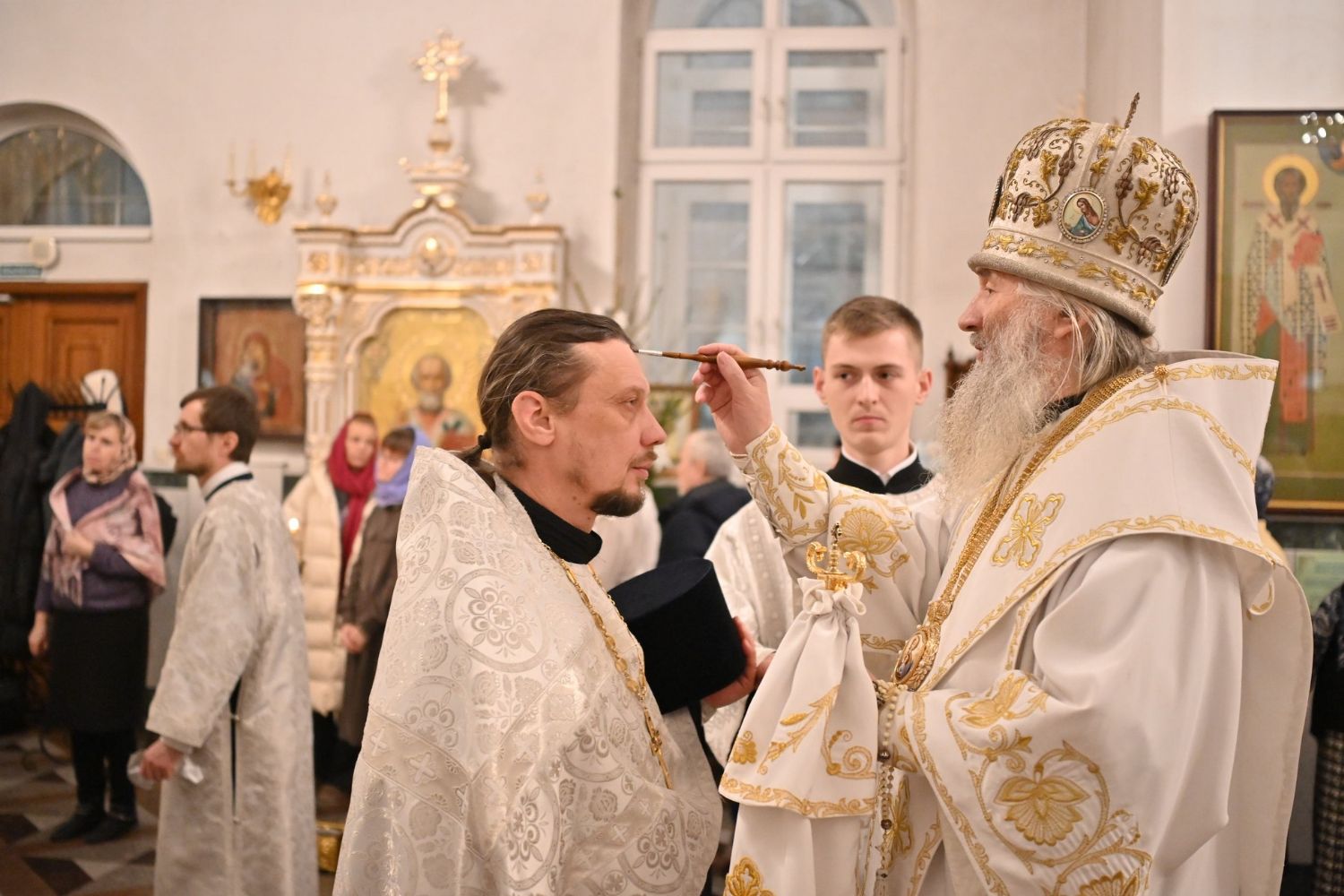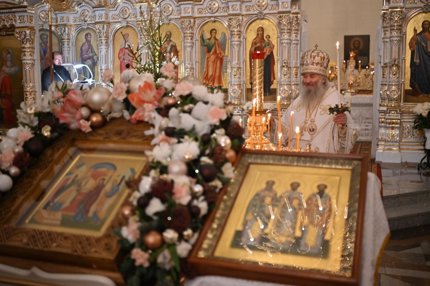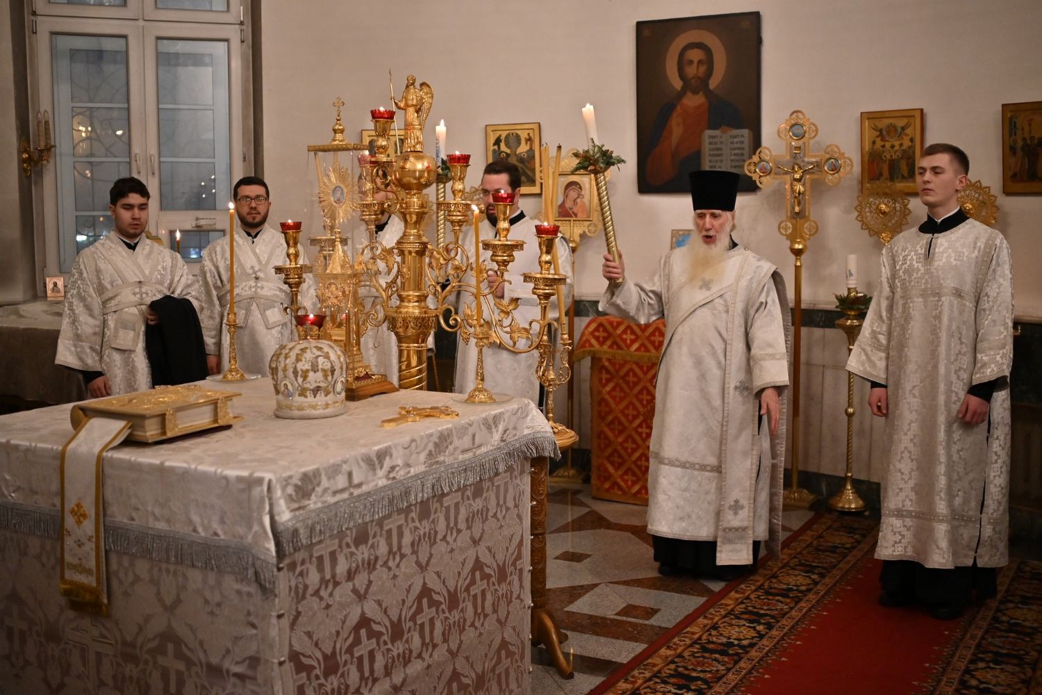 Владыке сослужили настоятель собора иерей Андрей Кочаков, клирики собора иерей Леонид Вылекжанин, иерей Димитрий Лукьянов и диакон Алексий Кузнецов, а также протодиакон Михаил Козловский. Песнопения исполнял хор собора под управлением Елены Поглазовой.
