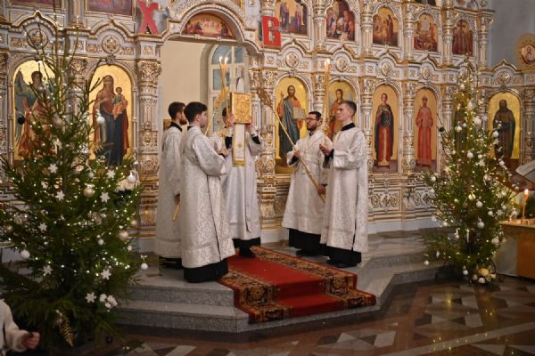 13 января вечером, в канун праздника Обрезания Господня, дня памяти святителя Василия Великого, митрополит Йошкар-Олинский и Марийский Иоанн возглавил всенощное бдение в Воскресенском соборе г. Йошкар-Олы.
