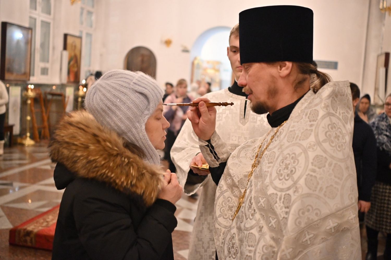 На утрене после чтения Евангелия верующие помазывались освященным елеем и вкушали литийный хлеб.