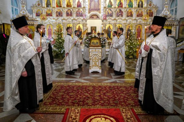 13 января вечером, в канун праздника Обрезания Господня, дня памяти святителя Василия Великого, митрополит Йошкар-Олинский и Марийский Иоанн возглавил всенощное бдение в Воскресенском соборе г. Йошкар-Олы.