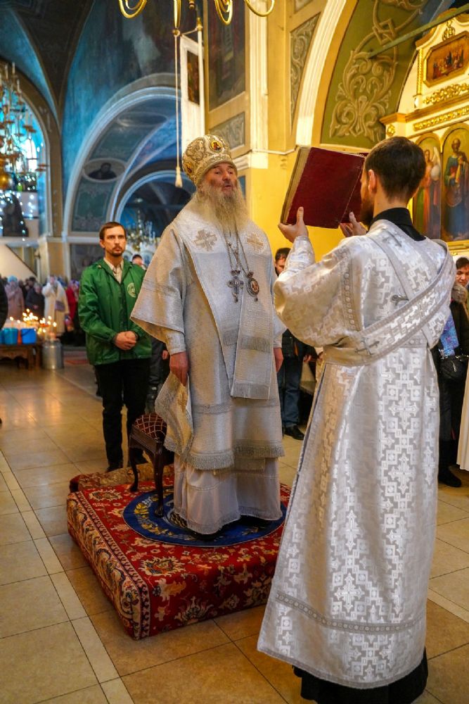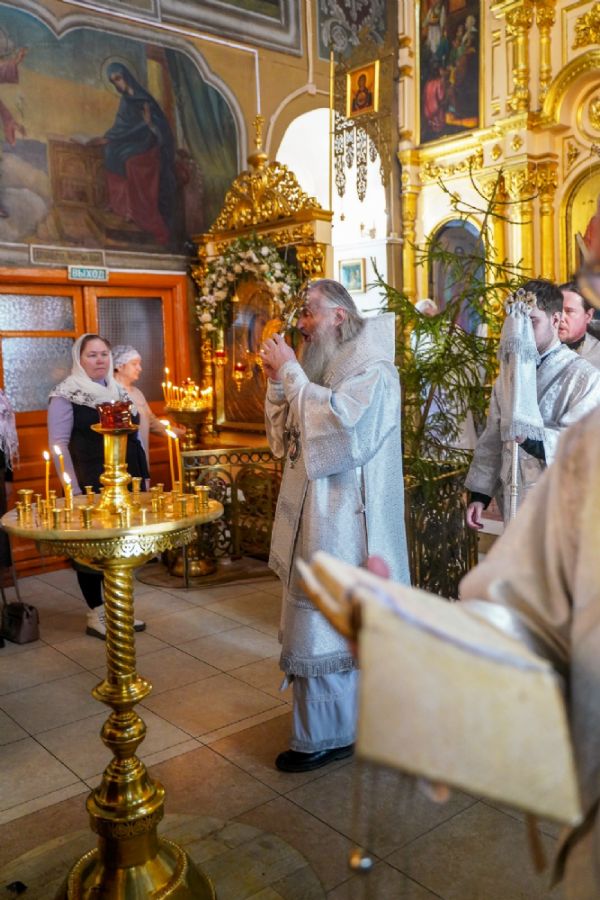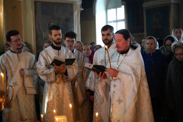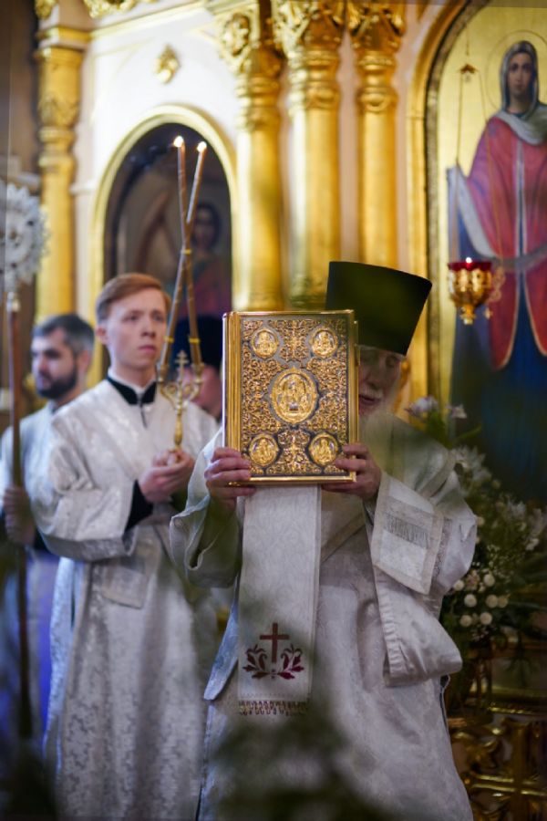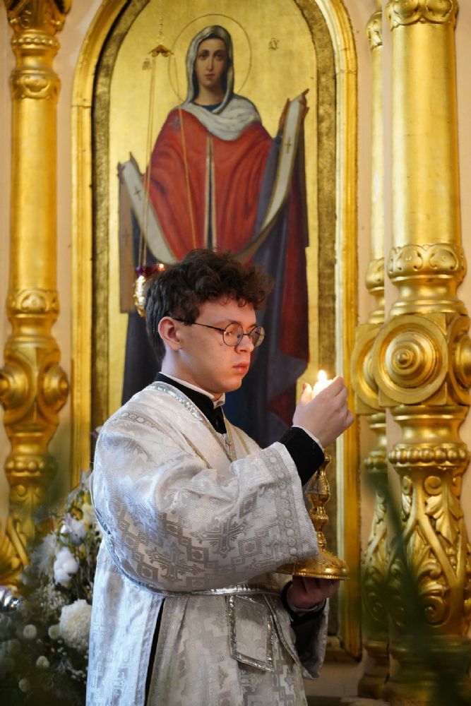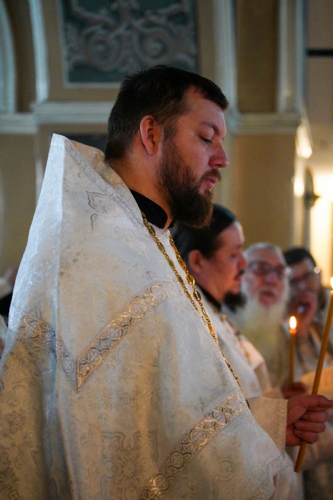 Его Высокопреосвященству сослужили клирики храма иереи Димитрий Иванов, Сергий Асланов и Павел Дурандин, протодиакон Михаил Козловский, диаконы Александр Жирнов и Димитрий Смирнов. Песнопения исполнял хор храма.