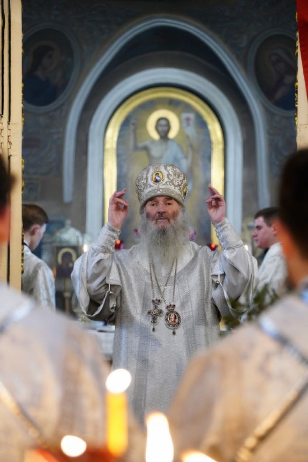 После богослужения митрополит Иоанн обратился к верующим с архипастырским словом: «Сегодняшнее богослужение каждому из нас открыло, что происходило почти две тысячи лет назад в Иудейской пустыне, когда Иоанн Предтеча, услышав голос ангельский, пошел в Иерусалим и там крестил людей, призывая всех очистить покаянием свое сердце и назидая каждого приходящего к нему, как следует жить после крещения, чтобы угодить Богу… А когда к нему пришел Господь, Иоанн указал всем на Него, засвидетельствовав, что это – Агнец Божий, Спаситель мира, пришедший, чтобы взять на Себя все грехи человеческие, и Он будет крестить людей Духом Святым. Да, каждый из нас в таинстве Крещения был Духом Святым освящен и очищен. Когда нас в купель окунали, мы умирали для греха, а когда вынимали, мы восставали для вечной радости от Господа.