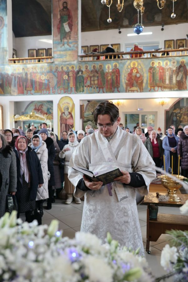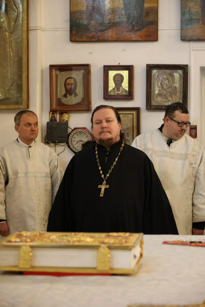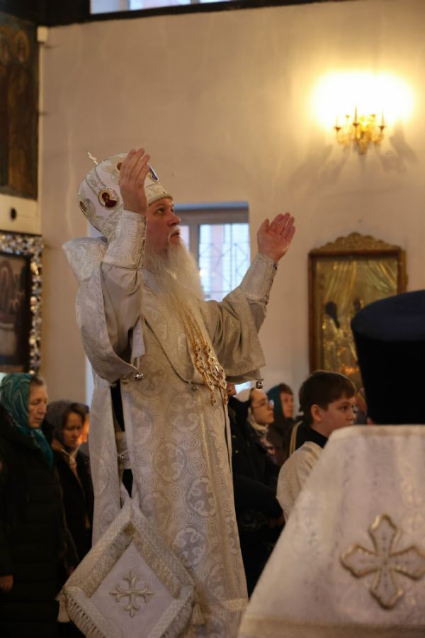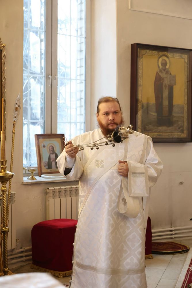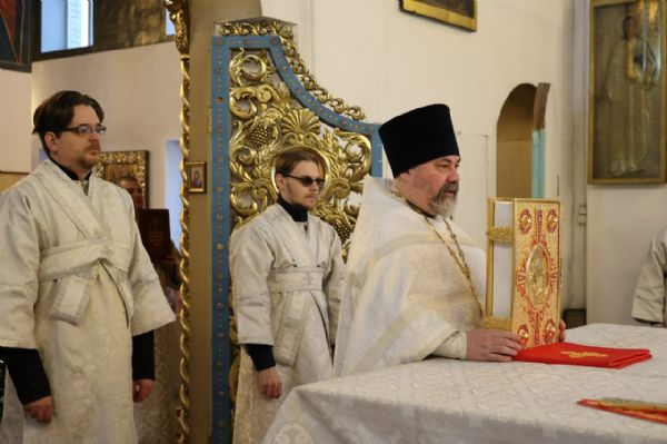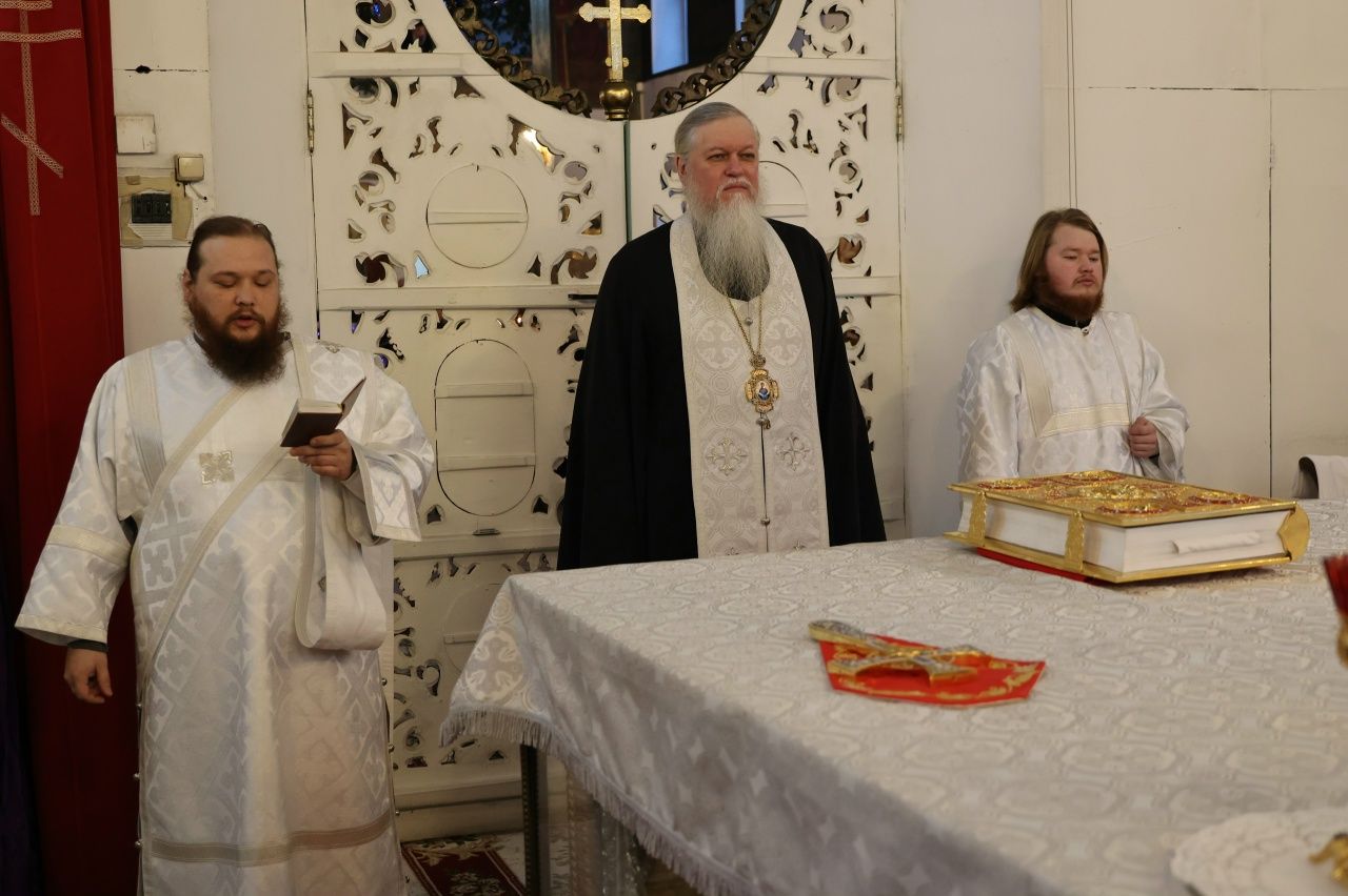 Его Преосвященству сослужили клирики собора протоиерей Виталий Михеев, иерей Николай Аникин, иеромонах Александр (Чеборов), иеромонах Авель (Крашенинников), иеромонах Питирим (Мосякин), диакон Иоанн Захаров и диакон Александр Викторов. Песнопения исполнял архиерейский хор под управлением Любови Михеевой.