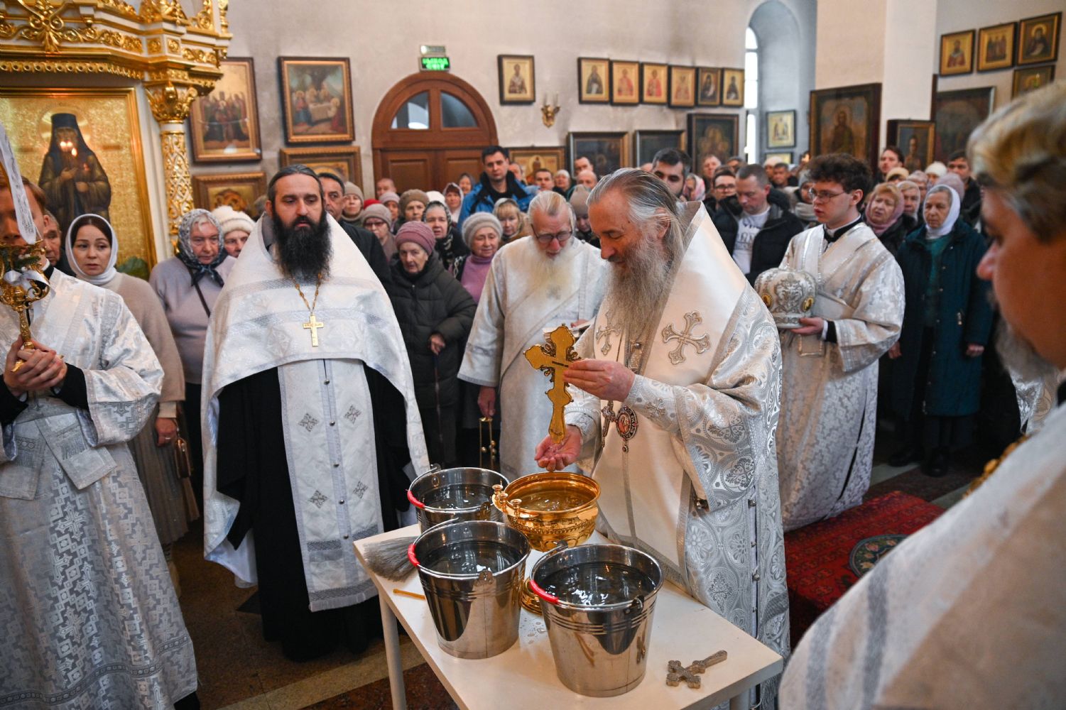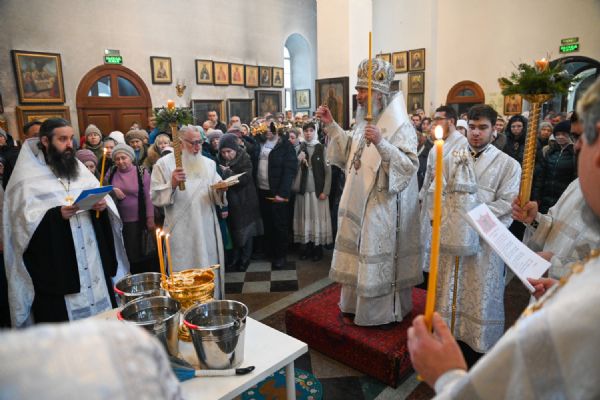 По окончании Литургии митрополит Иоанн возглавил чин великого освящения воды, после чего обратился к собравшимся с архипастырским словом, напомнив евангельские события праздника Богоявления и раскрыв его глубочайший духовный смысл.