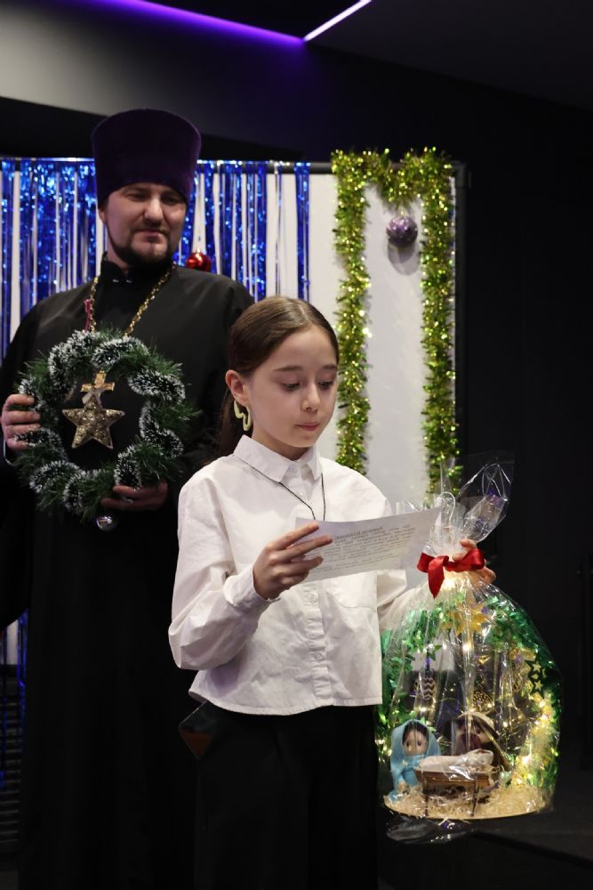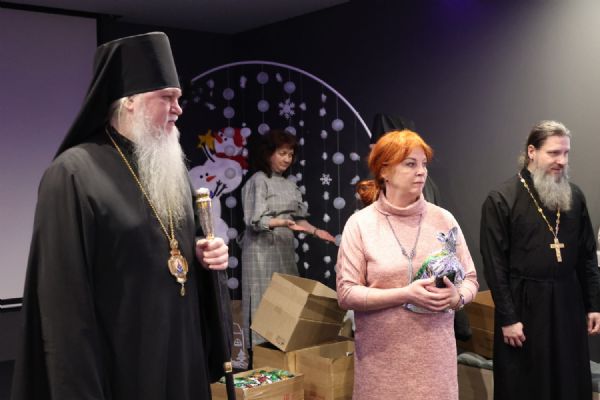 Далее епископ Феофан вручил воспитанникам Центра сладкие подарки, а они в ответ преподнесли владыке и священникам подарки, сделанные своими руками. В завершение местная вокальная студия «Доремифасолька» выступила с музыкальной композицией «Волшебный вечер», посвященной празднику Рождества Христова.
