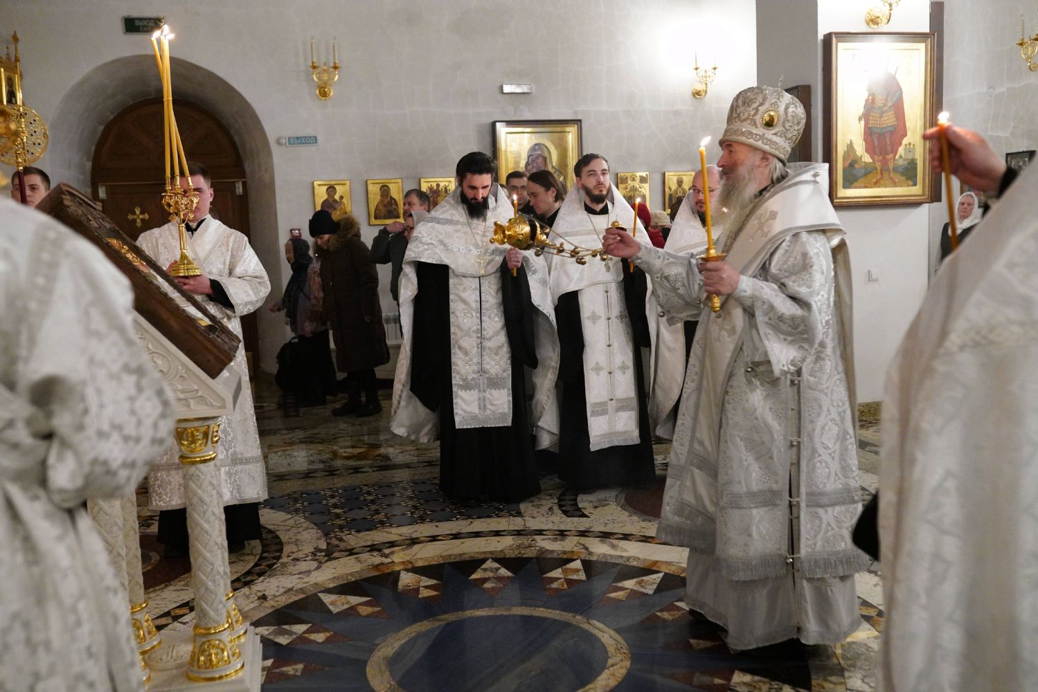25 января вечером митрополит Йошкар-Олинский и Марийский Иоанн возглавил вечерню с акафистом Иисусу Сладчайшему в храме иконы Божией Матери «Всех скорбящих Радость» в микрорайоне Тарханово г. Йошкар-Олы.