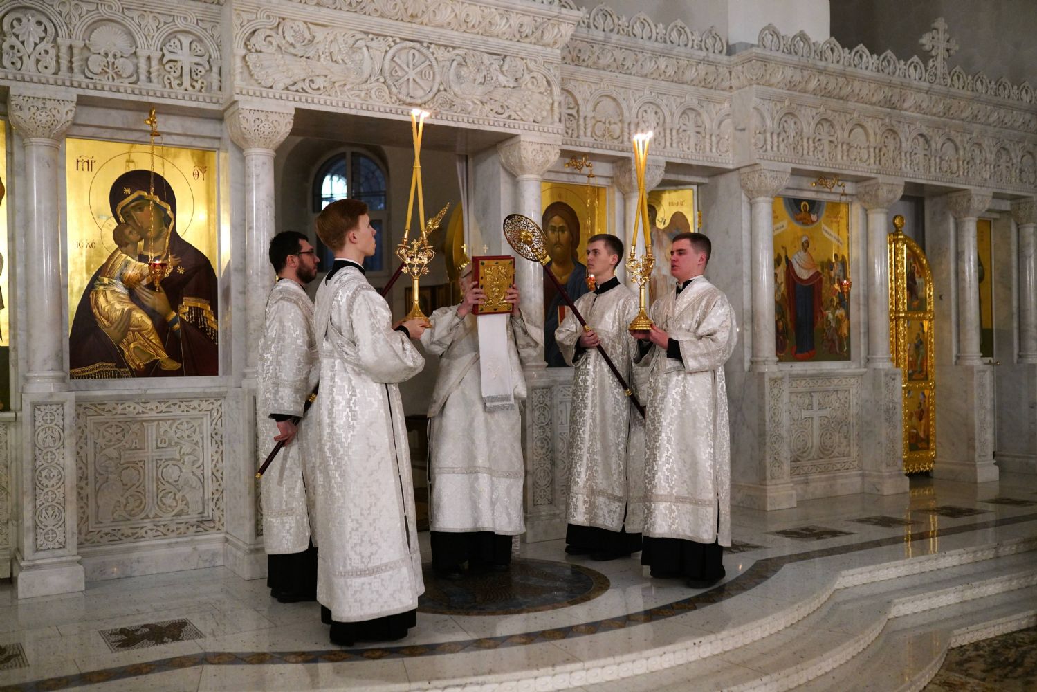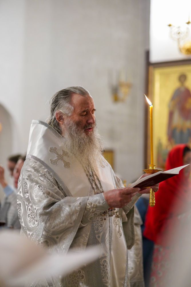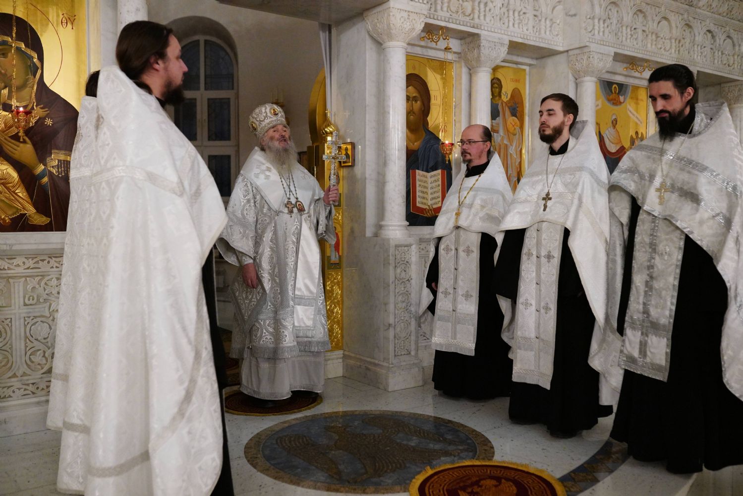 Владыке сослужили настоятель храма иерей Алексий Михеев, клирики храма иереи Алексий Кирюшкин, Игорь Коваль, Сергий Пуртов и Василий Пряморуков, а также протодиакон Михаил Козловский. Песнопения исполнял хор храма под управлением Александры Ивановой.