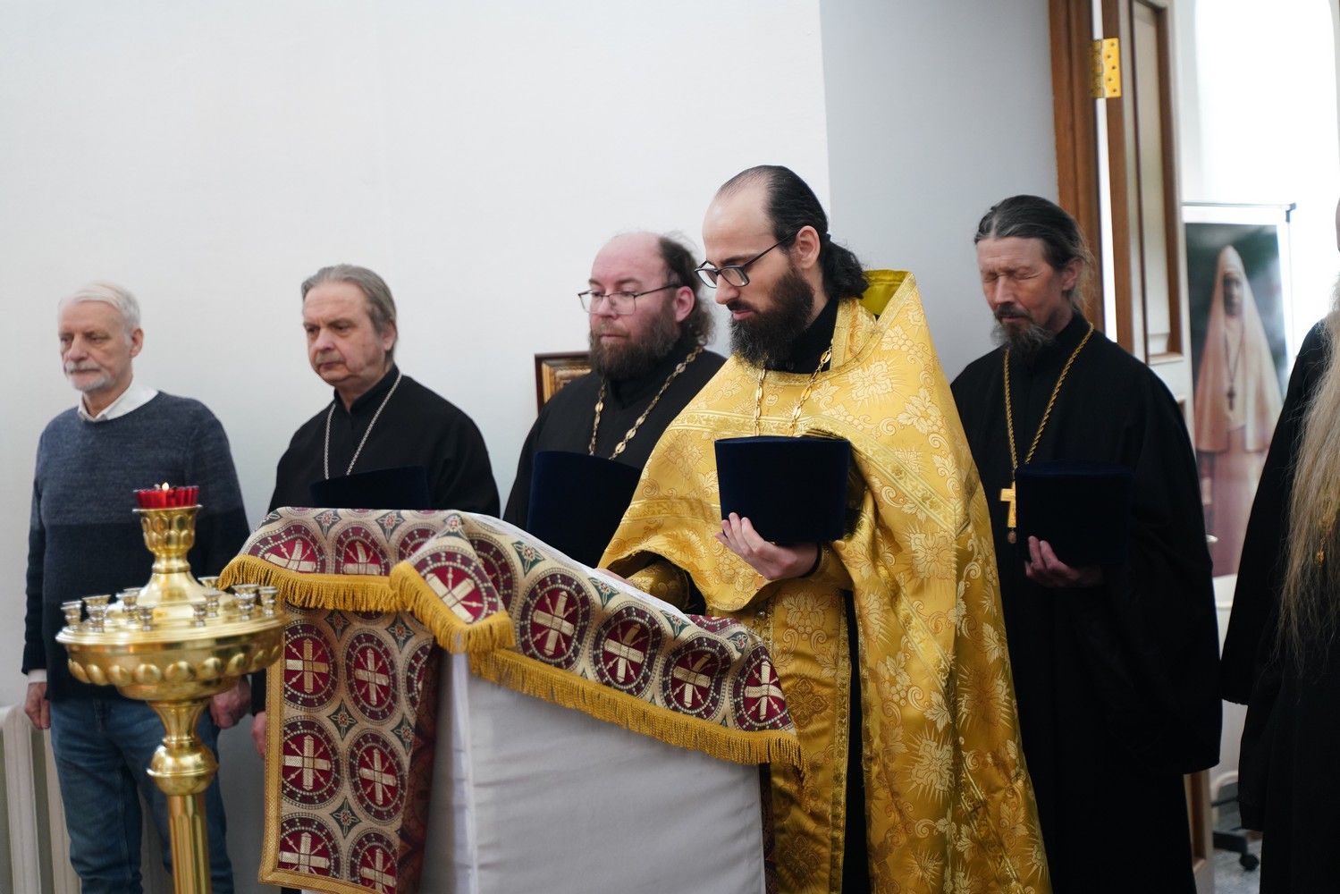 Молебен на начало всякого доброго дела в домовом храме в честь преподобномученицы великой княгини Елисаветы Православного центра совершил заместитель руководителя отдела религиозного образования и катехизации Йошкар-Олинской епархии, ответственный за повышение квалификации священнослужителей иерей Иоанн Кристев.