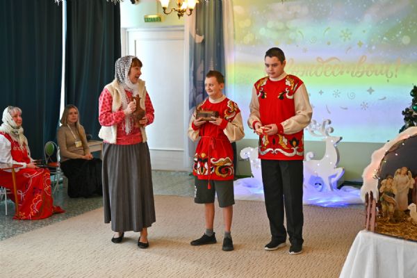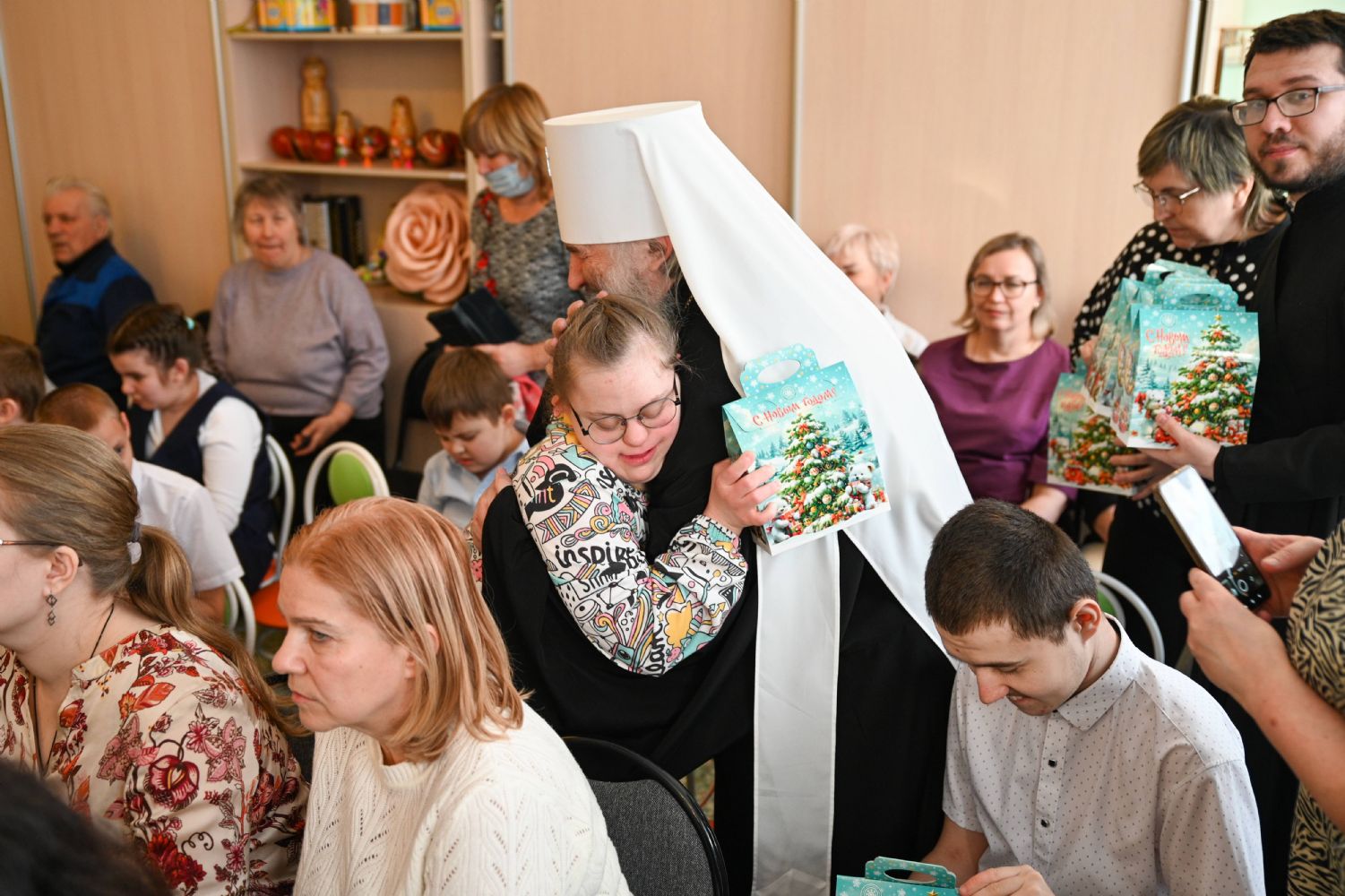 И, конечно, Рождество не бывает без подарков – первыми эту традицию заложили волхвы, пришедшие с дарами к Богомладенцу Христу. И воспитанники реабилитационного центра с помощью родителей изготовили своими руками рождественские сувениры, которые с радостью вручили гостям. А владыка одарил ребят и сотрудников центра сладостями.