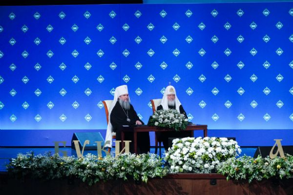 В зале Государственного Кремлевского дворца собралось свыше 5 тысяч человек: Преосвященные архипастыри — члены Священного Синода и Высшего Церковного Совета, главы экзархатов, митрополий и епархиальные архиереи Русской Православной Церкви, представители Поместных Православных Церквей, члены Межрелигиозного совета России, полномочные представители Президента Российской Федерации в федеральных округах, представители обеих палат российского парламента, руководители и представители федеральных и региональных органов власти, ректоры и представители свыше 250 российских и зарубежных вузов, директора и педагоги общеобразовательных организаций, священнослужители, приходские специалисты, деятели науки и культуры.