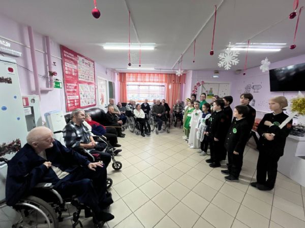 24 января учащиеся гимназии имени Сергия Радонежского – волонтёры отряда «Доброделание» – с педагогом Светланой Ерошкиной посетили Колянурский дом-интернат для престарелых и инвалидов (д. Колянур Советского района) с традиционным рождественским концертом.