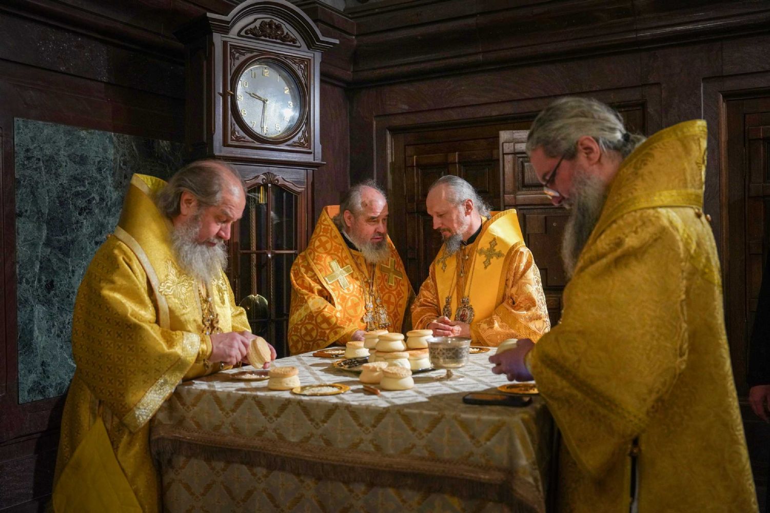 В сугубую ектению были включены особые прошения о Святой Руси, а также прошения о ныне чествуемом Святейшем Патриархе Кирилле и Церкви Русской, им ведомой. Митрополит Ювеналий прочитал молитву о Предстоятеле Русской Православной Церкви. Святейший Владыка вознес молитву о Святой Руси.